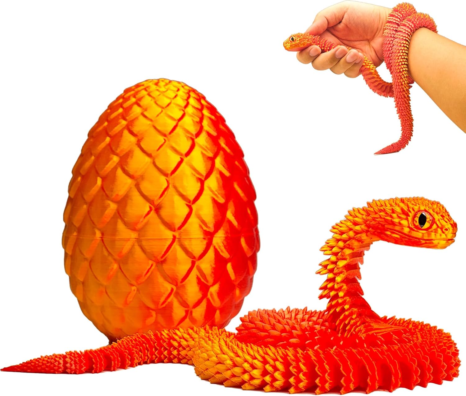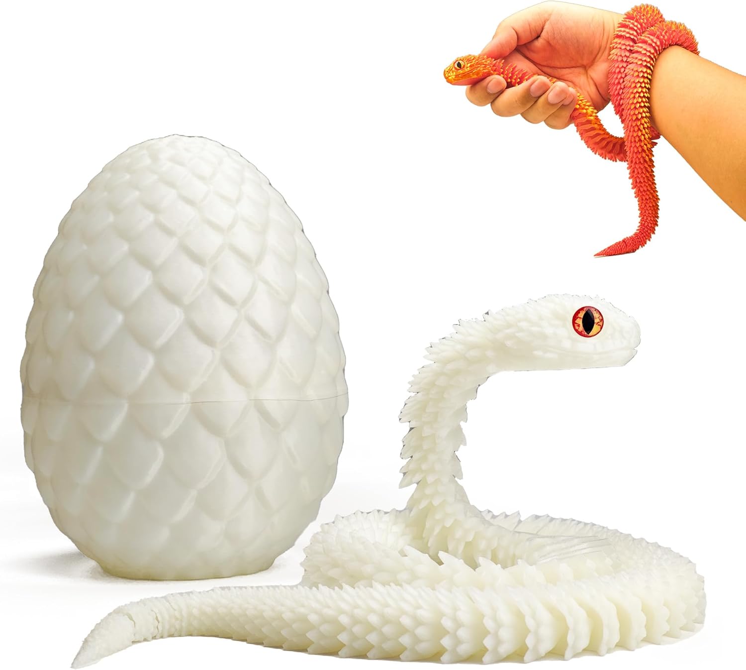 3D Printed Snake with Egg, 24 Inch Articulated 3D Printed Animals Toys, Like Movable Snake Realistic Slithering Design, Halloween Decor, Christmas Toy 2025