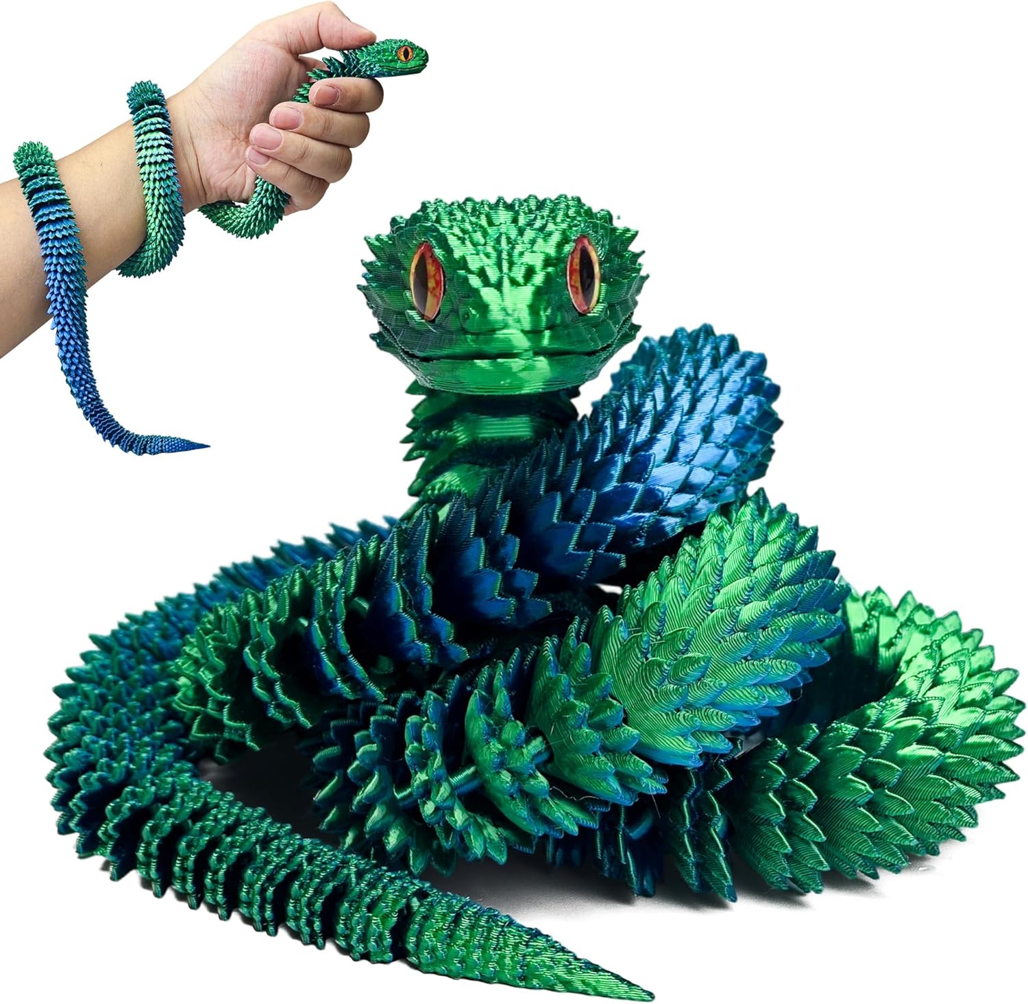 【Flexible Display Art】Crafted with articulated PLA joints, this 3D-printed serpent combines lifelike slithering movement with museum-quality detailing. Ideal as a striking centerpiece for shelves or an interactive accent in modern spaces