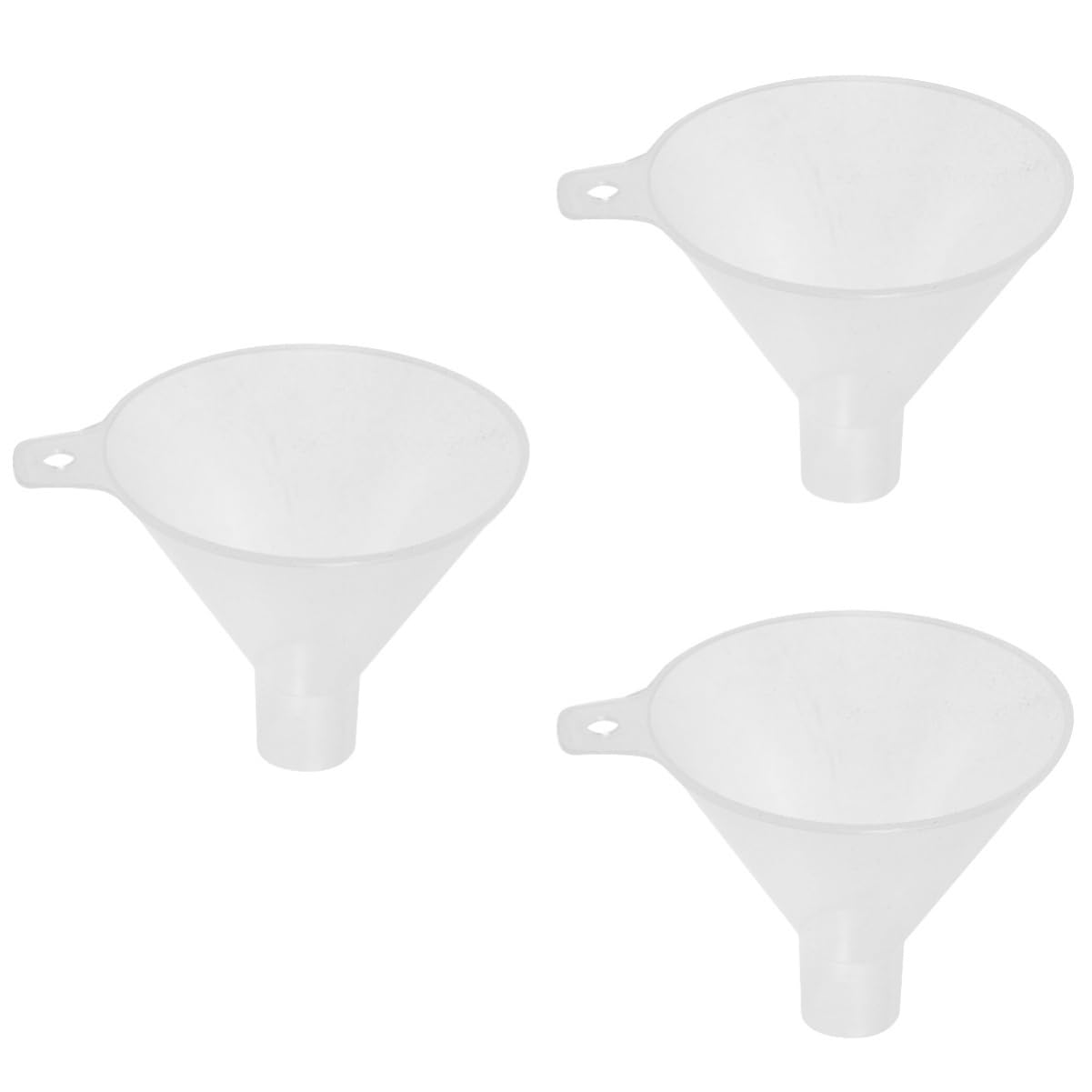 Package List 5 x Laboratory Funnel Features -Upper diameter:100mm filter funnels for laboratory -Color:Transparent wide mouth filter funnel -Size:12.30X10.50X9.00cm/4.83X4.13X3.54in large -Material:Plastic laboratory funnel - suited for laboratory use, ensuring efficient and stable performance scientific filling funnels. -Features flat-bottomed design that facilitates easy pouring of materials . -This lab funnel is made of plastic for enhanced durability and effortless cleaning scientific experiment. -With a proper size, it is ideal for meeting the needs of large-scale reagent addition scientific funnel. -This laboratory funnel is specifically designed for adding powder reagents liquid.Goods Informationscientific funnel The flat-bottomed design makes it easy to add and pour materials, and it can be used for powder reagent.scientific filling funnels The size is suitable for large-scale reagent addition needs.laboratory separatory funnel This laboratory reagent funnel is for laboratory use.laboratory funnel Made of plastic, it is and easy to clean