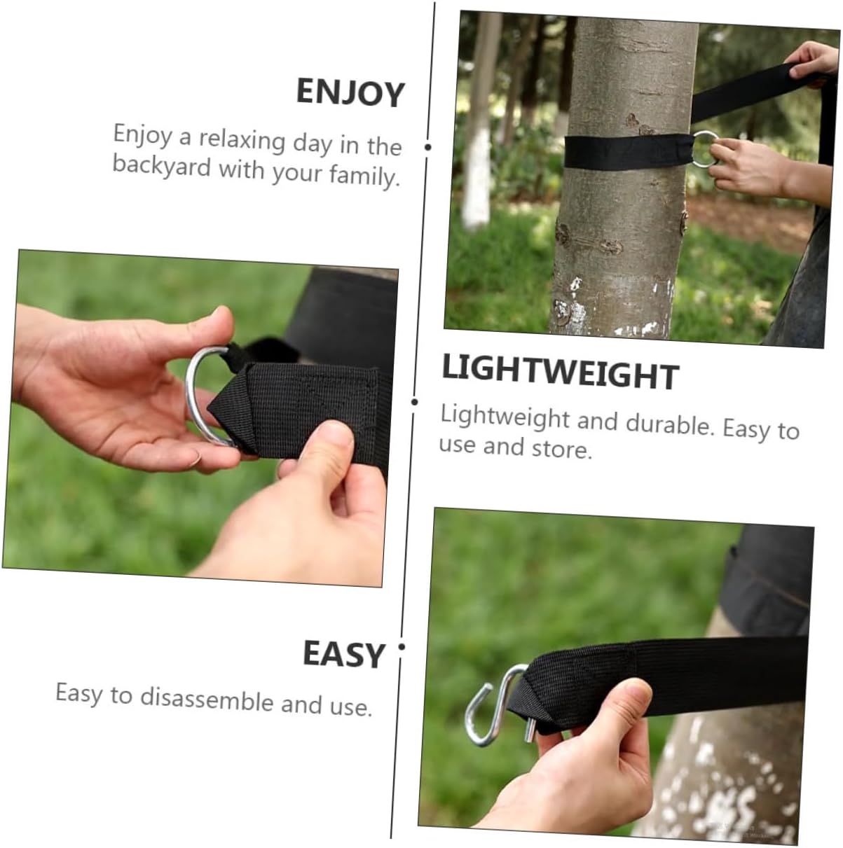 Package List 6 x straps 6 x hooks Characteristics - Material: Nylon - Color: Black - Size: About 300.00X5.00X0.30cm/ 117.90X1.97X0.12inch -Product Info:Hammock rope - You can take them with you camping, backpacking, wherever tree sling strap. - Heavy duty swing ropes always keep your from and injury tree swing hanging straps. - Adopts precision production to stable characteristics and high reliability hanging straps. - Lightweight, portable swings and hammock straps are for camping, hiking and picnics outdoor camping hanging rope. - Making your swing safe for everyone to enjoy is easy and simple with the straps set swing hammock straps.Goods InformationSwing Hanging Ropes It is one of the for you.swing hammock straps Are you looking for a professional, yet hammock strap? Are you in search of a sturdy, trustworthy tool that can do multiple jobs at once? , ! Our professional hammock strap must meet your needs