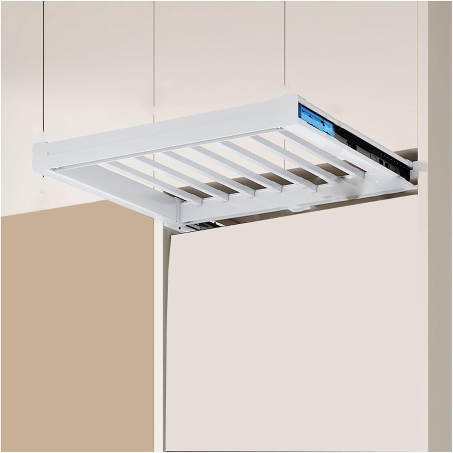 • Convenient Installation: This Pull Out Trousers Rack Drawer is simple to install and easy to use. Choose the appropriate height, determine the position, install the screws to fix the guide rail, and finally snap the bracket in.