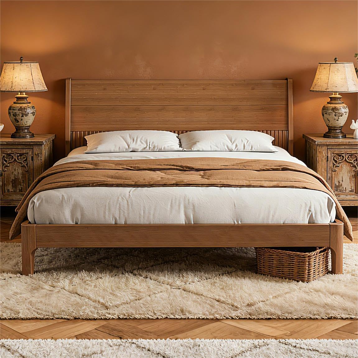 Bellemave Full Bed Frame with Headboard & Low Footboard, Bamboo Full Size Bed Frame with Wood Slats Support 500LBS, Japanese Bed Frame Full Size, No Box Spring Needed, Natural