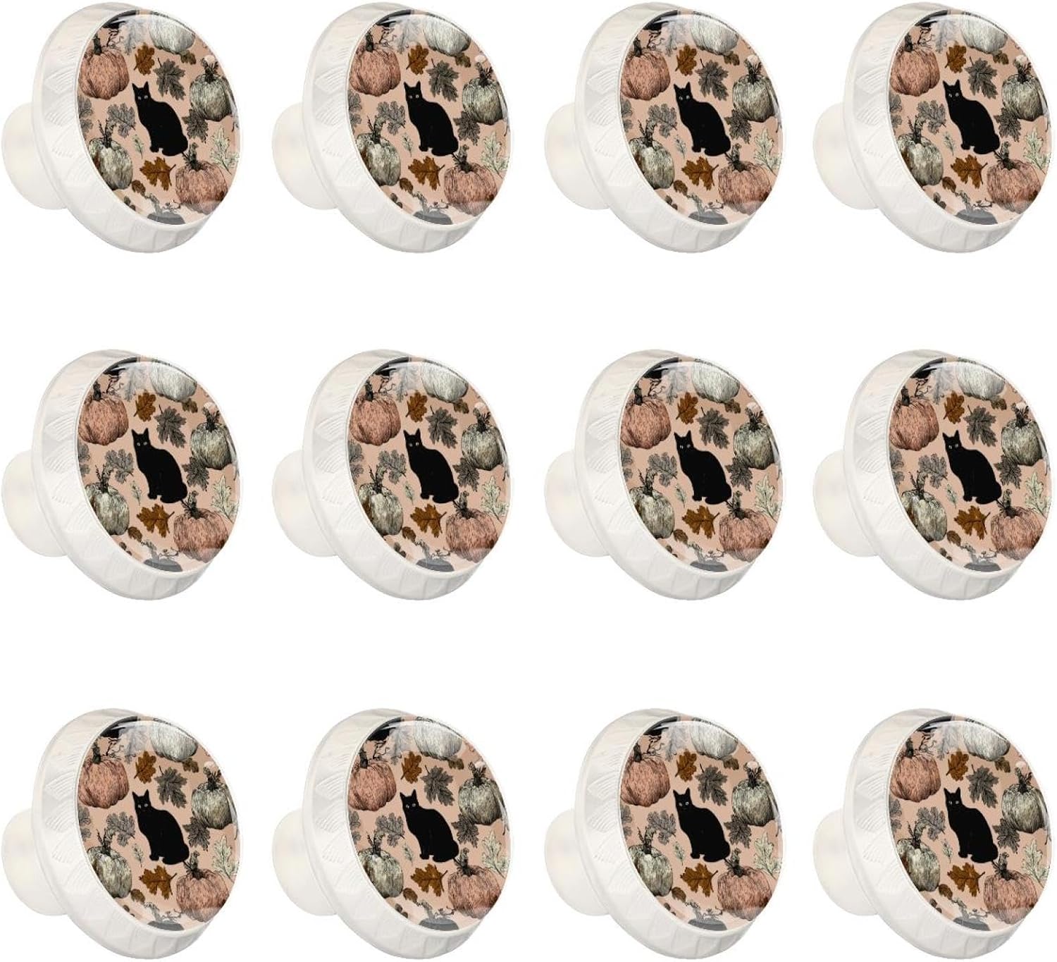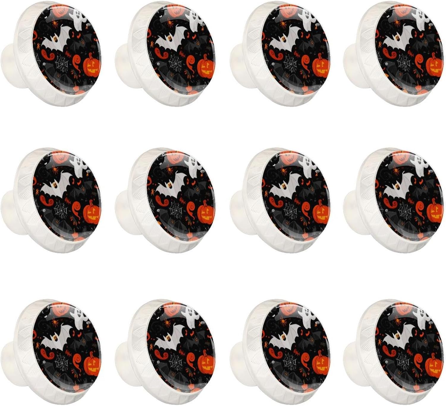 Black Halloween (13) Pattern Drawer Knobs, Decorative Cabinet Hardware for Bathroom Cabinet, Sturdy Glass Knobs with Screws