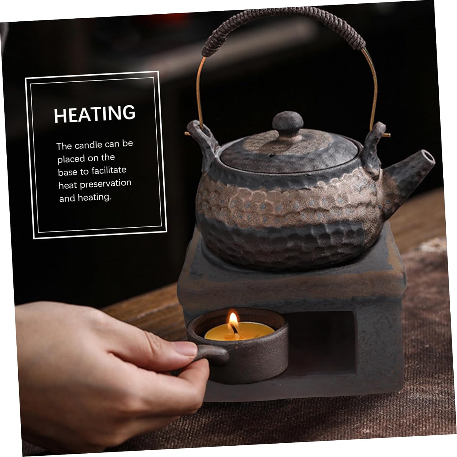 Cabilock Ceramic Tea Warming Stove Teapot Heating Base Vintage Handcrafted Teapot Warmer for Loose Leaf and Blooming Tea Suitable for Home Use