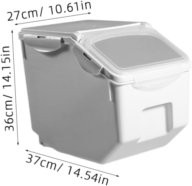 Package Include 1 x Rice Storage Bucket Characteristics - Color: White Rice Cylinder. - Size: x 195 x 27 cm Multi-functional Storage Box. - Material: PP and silicone Rice Storage Bucket. - Scale display on the side, you can know the amount easily and quickly Comes with a measuring cup, the bottom has wheels, and flip-type opening, very easy and convenient Flour Organizer. - With visible window design, you can see the inner clearly , need to open the box Rice Bucket. - This is a new household rice bucket made of PP material, suitable for mobile storage in the kitchen. - With 6 fasten buckle design, fasten tightly, the sealing effect is pretty great. - It can be safely used for dry food such as brown rice, nuts, beans, cereals, snacks, oatmeal and so on.Goods DescriptionRice Cylinder Sealed buckle design, waterproof, , safe to use.Moistureproof Rice Bucket Flip-type opening, more convenient.Rice Storage Bucket It is a rice storage bucket, made of food-grade PP plastic, safe and .Flour Organizer Multifunctional design, a solution for rice storage, which can keep rice dry and. Great for storing rice, or whatever you need every day
