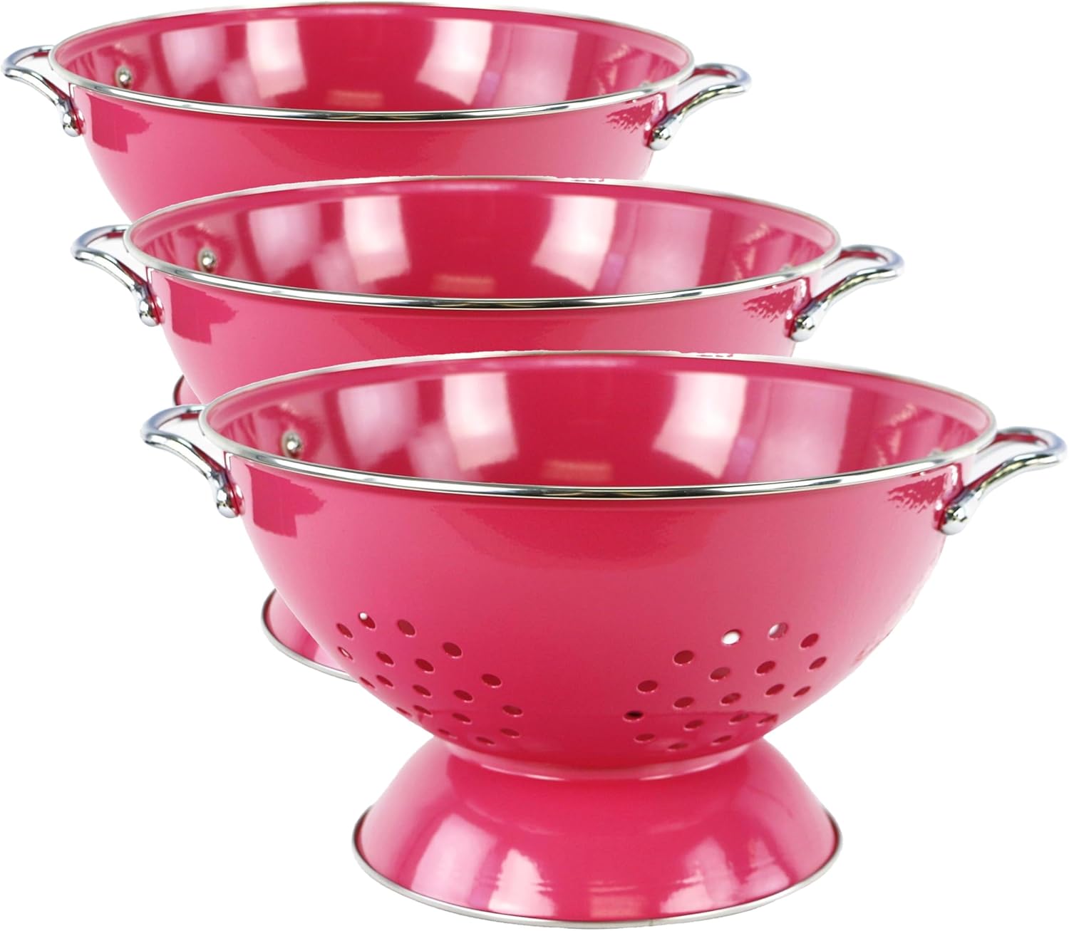 Reston Lloyd is a leading manufacturer and distributor of kitchenware, specializing in enamel on steel products. For nearly 30 years, they have been dedicated to providing the highest quality products, with an equal emphasis on superior customer service. Reston Lloyd provides a wide variety of household goods that coordinate with patterns of popular dinnerware manufacturers. The Calypso colander features a powder coated finish with enamel on steel that creates a beautiful color fiinish that will not flake or discolor. Each colander features chrome-plated handles. It has a wide base, stainless steel rim, and well placed holes for easy draining. Suitable for both hot and cold prep. When not using as a colander, try it out as a fruit basket, it will look great on your counter. Hand wash recommended.