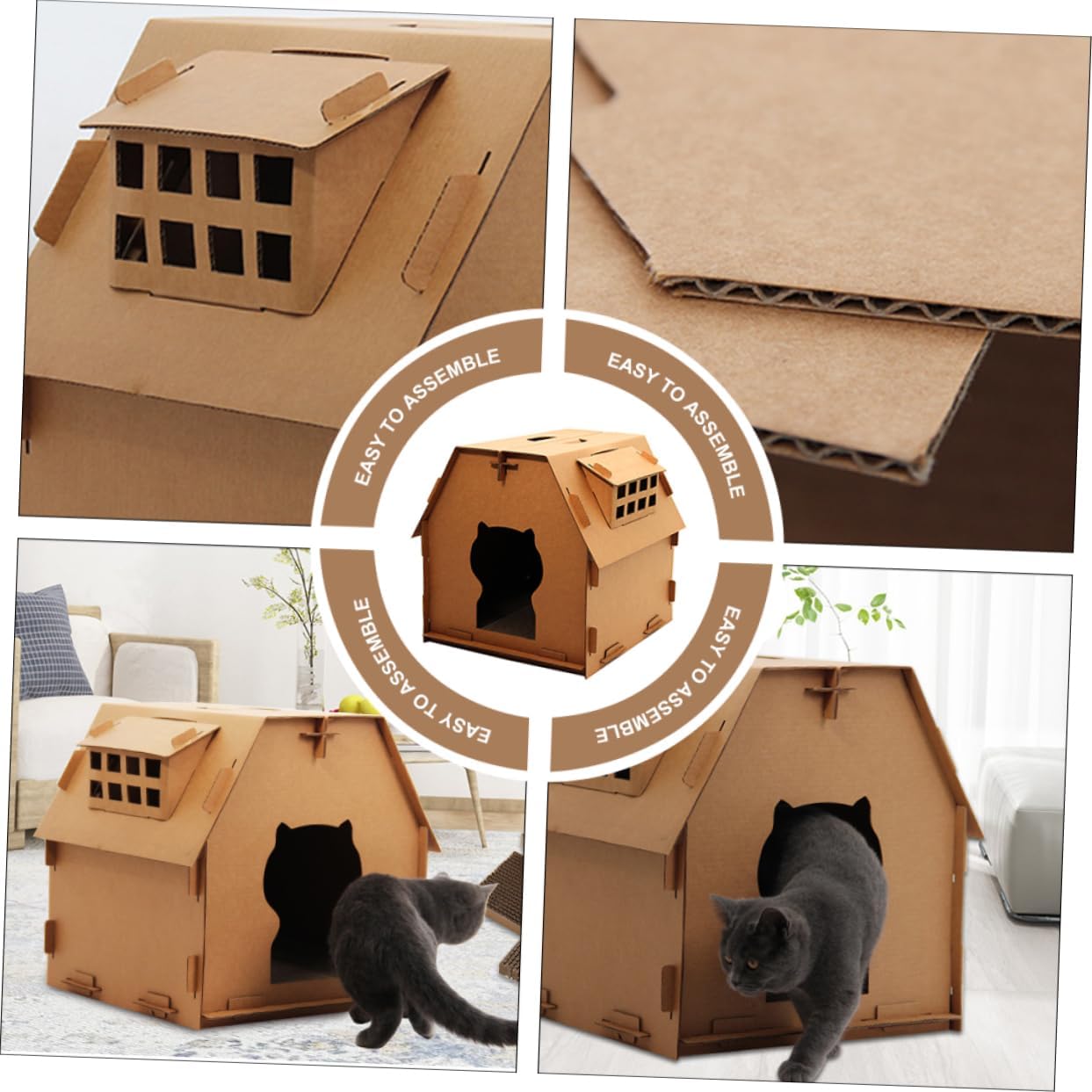Package List 1 x cat house Features - Material: Corrugated paper Cardboard Cat House. - Color: Khaki Scratching Board. - Size: About 42.00X43.00X42.00cm/16.51X16.90X16.51 inch Cardboard Cat Scratcher. - Create a comfortable, private and warm place to sleep and relax for your pet Cat Scratch Board. - A home decor and a special house prepared for your beloved pet Kitten Cardboard House. - The cat scratcher features a house design that provides an enclosed space for cats to lounge in or their scratching needs in privacy Cardboard House for Cats. - Made of thickened corrugated paper with strong construction. Environmental for cat safe use.- Designed for assembling with endless joy. Great significant your Scratcher House.Goods DescriptionCardboard House for Cats want to give your cat a house? This cat house is a for you! Let your cat relax, exercise and have fun indoors without taking up too much space.Kitten Cardboard House It is a place for your cats and keep them from scratching your furniture.Cardboard Cat House The cat scratcher is easy to assemble and use