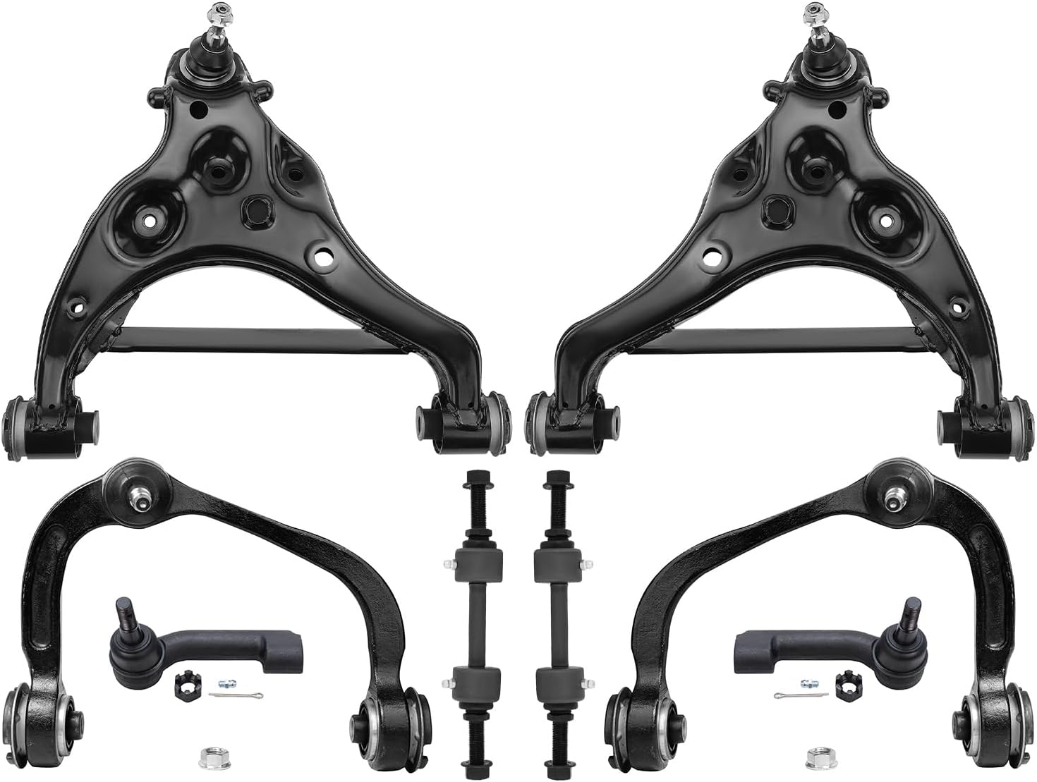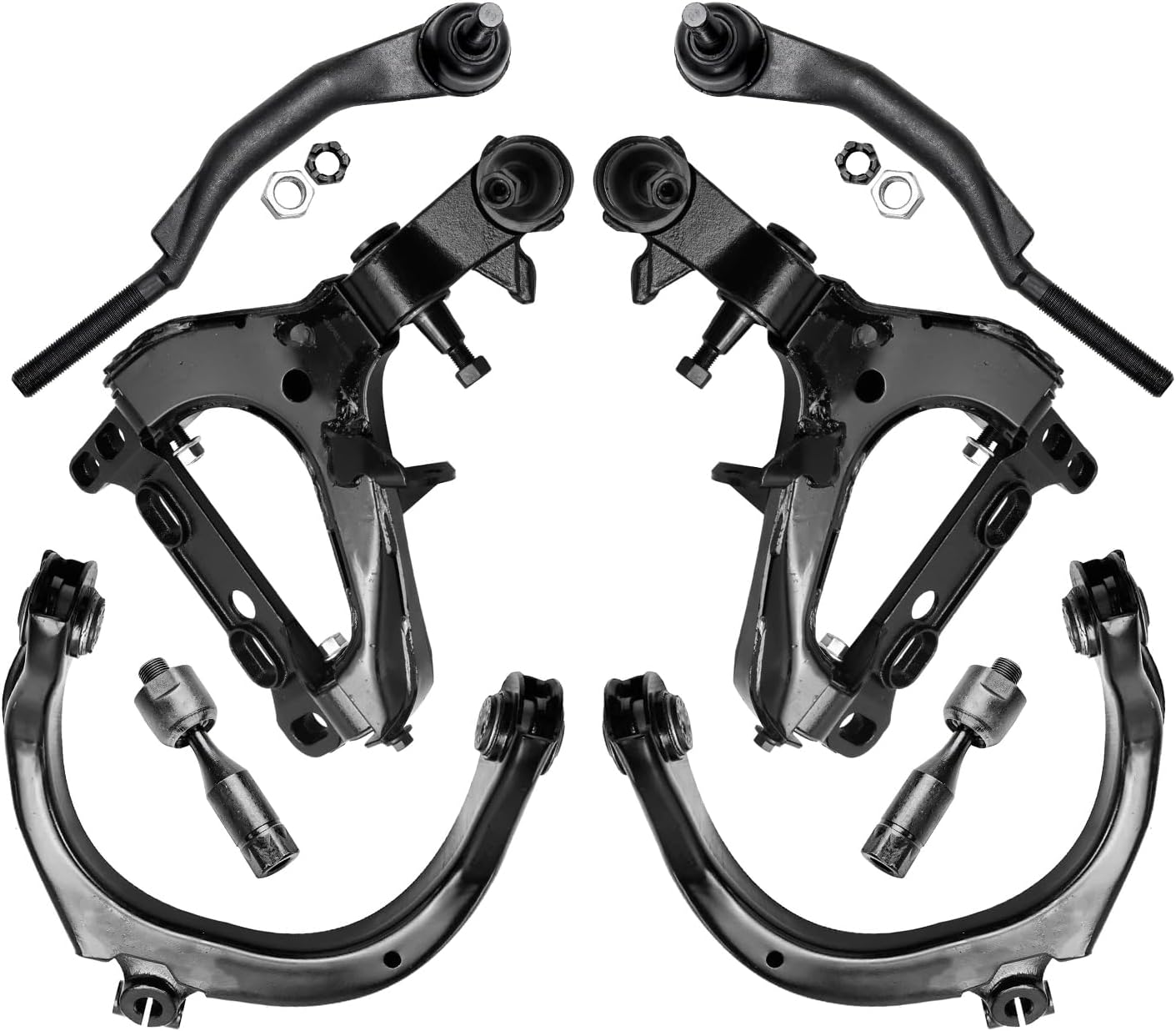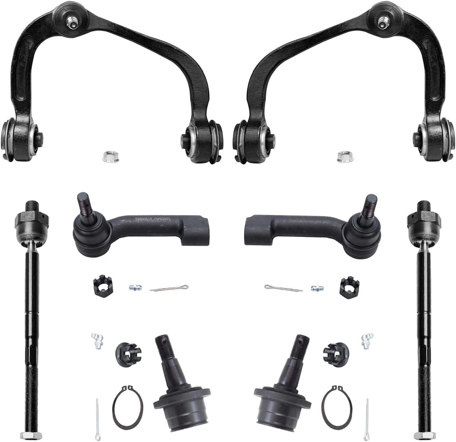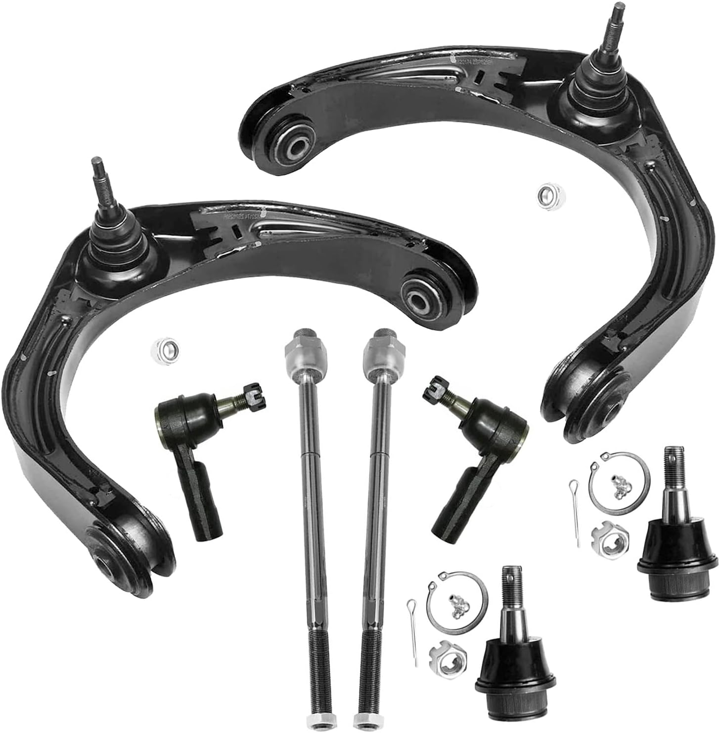 Kit Includes:1x Front Upper Control Arm w/Ball Joint Assembly - Driver Side - K6430741x Front Upper Control Arm w/Ball Joint Assembly - Passenger Side - K6430732x Front Outer Tie Rod Ends - Driver & Passenger Side - ES805742x Front Inner Tie Rod Ends - Driver & Passenger Side - EV8000982x Front Lower Ball Joints - Driver & Passenger Side - K500286Fitment:Replacement for 2009-2010 Dodge Ram 1500 (with Stamped Steel Arm; 5-Lug; 4WD)Replacement for 2011-2012 Ram 1500 (with Stamped Steel Arm; 5-Lug; 4WD)Introduction:Detroit Axle is a leading global retailer and distributor of OE re-manufactured and new aftermarket auto parts. We are committed to providing first-class products and outstanding customer service at an incredible value. Our rapidly-expanding product line includes CV Axles, Wheel Hub & Bearings, Suspension & Chassis parts, Complete Strut Assemblies, Shock Absorbers, Drilled & Slotted Brake Rotors, Conventional Brake Rotors, Ceramic Brake Pads, Brake Fluids, Brake Cleaners, Rack & Pinion Assemblies, Gearboxes, Drive Shafts, Transmissions, Brake Calipers, Wheel Lug Nuts, and more. With over 30 years of experience, we are proud that millions of customers around the world rely on Detroit Axle parts. We have two Metro Detroit storefront locations on the north and west sides of the city. Our flagship location, in the heart of Detroit’s 8 Mile Road, is a combined retail storefront and over 180,000 square feet of the warehouse that serves as our global distribution center.