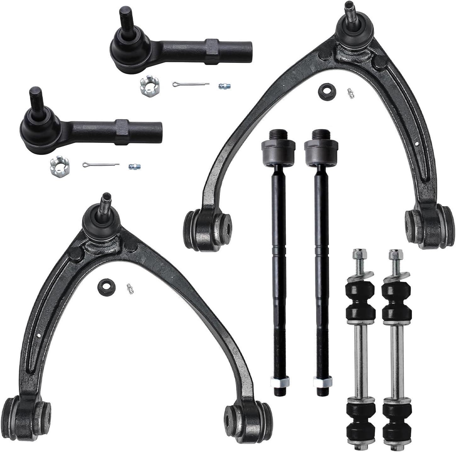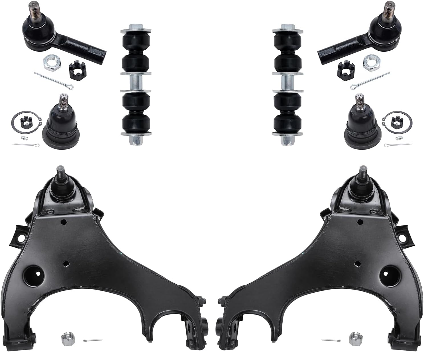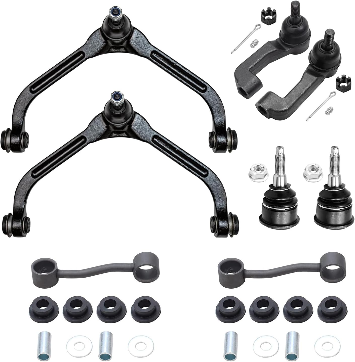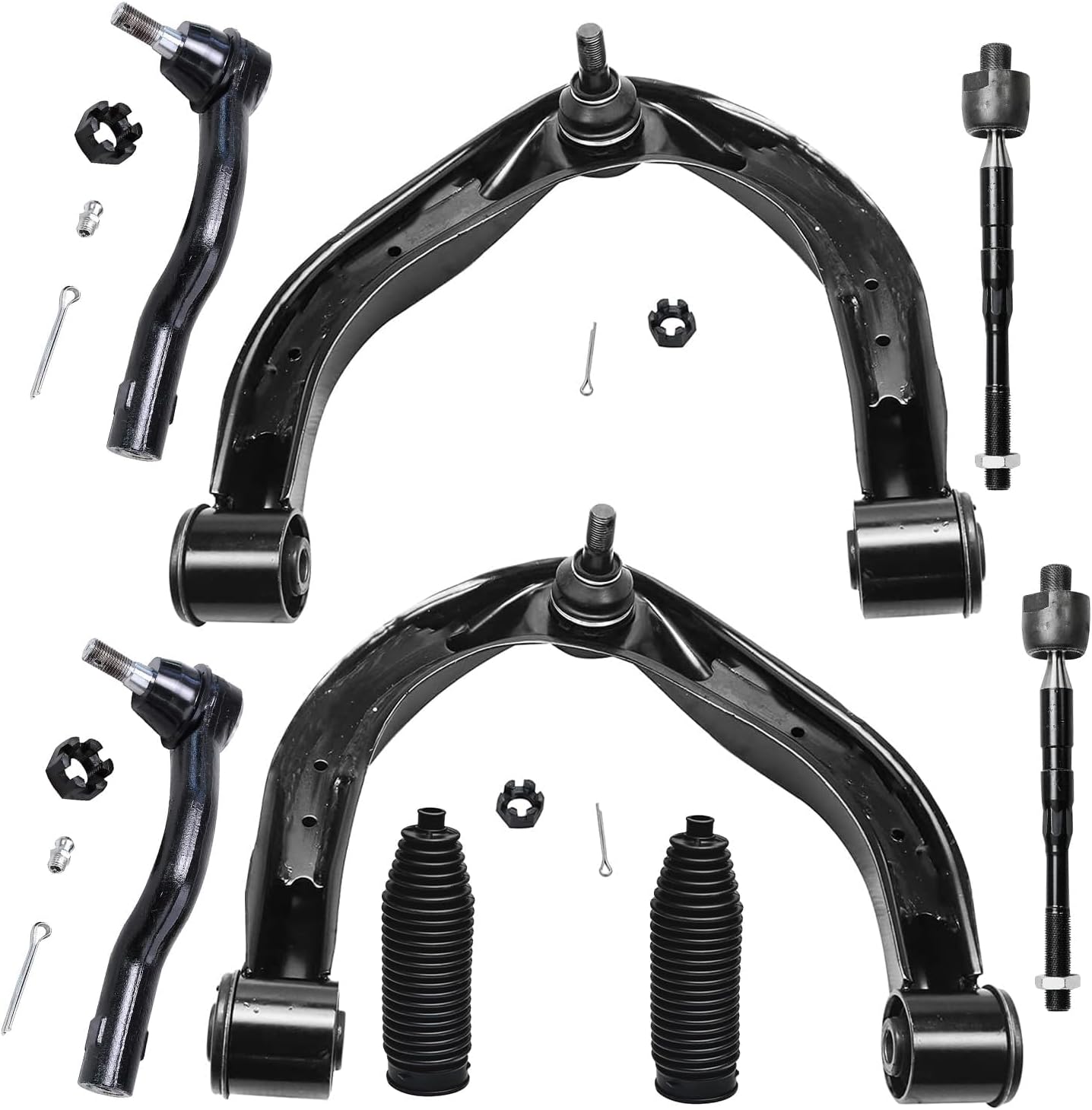Kit Includes:1x Front Upper Control Arm w/Ball Joint Assembly - Driver Side - K6430741x Front Upper Control Arm w/Ball Joint Assembly - Passenger Side - K6430732x Front Outer Tie Rod Ends - Driver & Passenger Side - ES805742x Front Inner Tie Rod Ends - Driver & Passenger Side - EV8000982x Front Lower Ball Joints - Driver & Passenger Side - K500286Fitment:Replacement for 2009-2010 Dodge Ram 1500 (with Stamped Steel Arm; 5-Lug; 4WD)Replacement for 2011-2012 Ram 1500 (with Stamped Steel Arm; 5-Lug; 4WD)Introduction:Detroit Axle is a leading global retailer and distributor of OE re-manufactured and new aftermarket auto parts. We are committed to providing first-class products and outstanding customer service at an incredible value. Our rapidly-expanding product line includes CV Axles, Wheel Hub & Bearings, Suspension & Chassis parts, Complete Strut Assemblies, Shock Absorbers, Drilled & Slotted Brake Rotors, Conventional Brake Rotors, Ceramic Brake Pads, Brake Fluids, Brake Cleaners, Rack & Pinion Assemblies, Gearboxes, Drive Shafts, Transmissions, Brake Calipers, Wheel Lug Nuts, and more. With over 30 years of experience, we are proud that millions of customers around the world rely on Detroit Axle parts. We have two Metro Detroit storefront locations on the north and west sides of the city. Our flagship location, in the heart of Detroit’s 8 Mile Road, is a combined retail storefront and over 180,000 square feet of the warehouse that serves as our global distribution center.