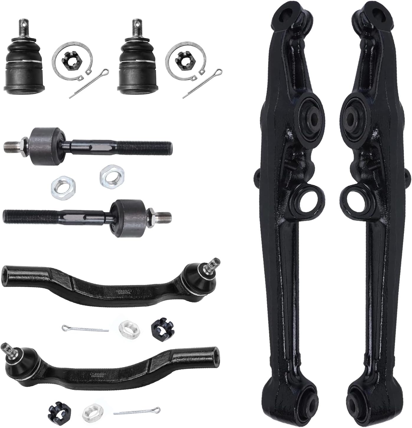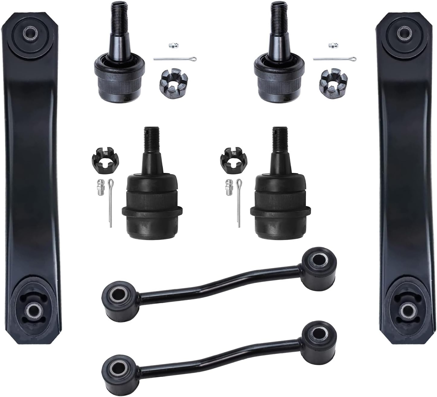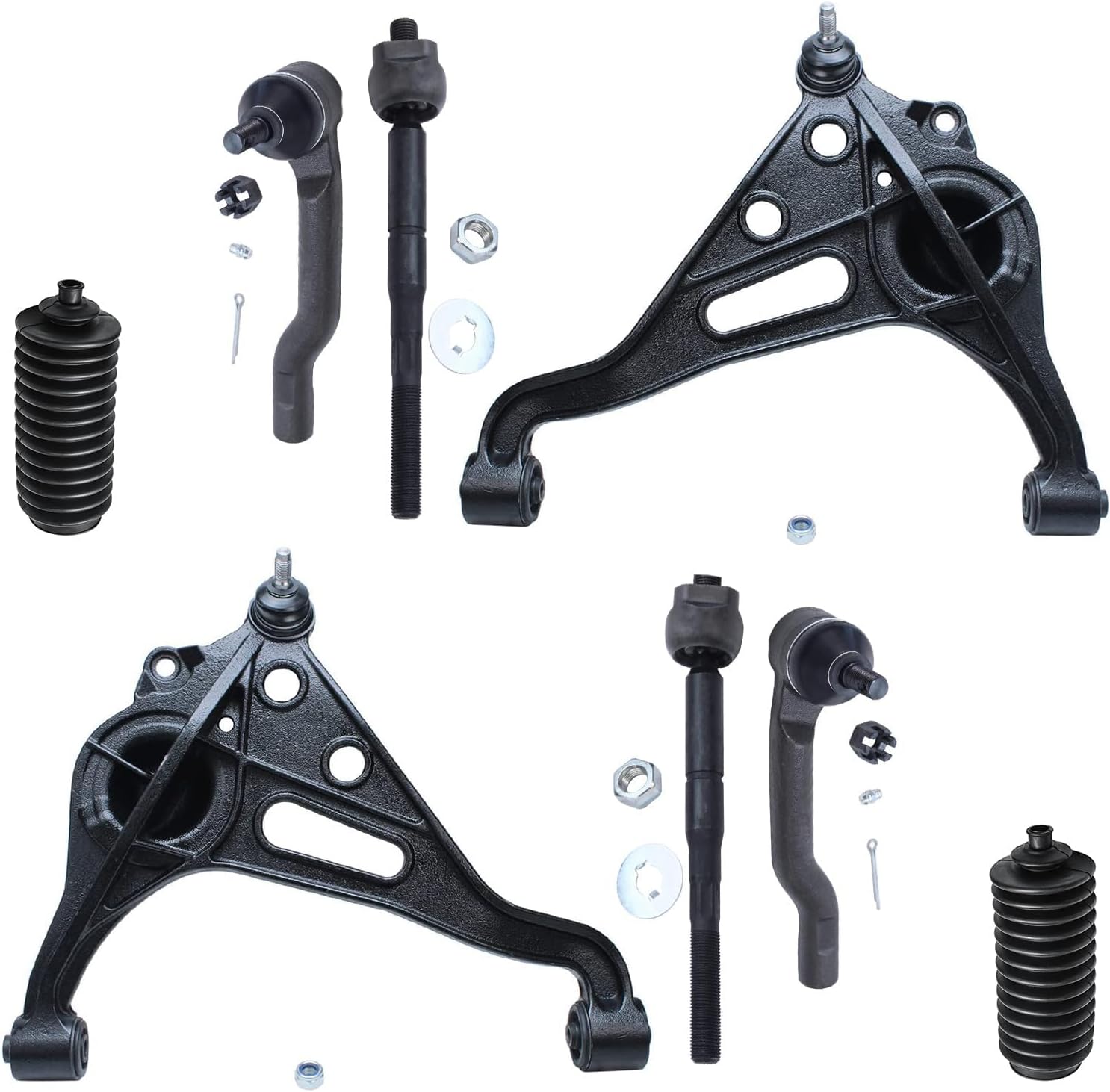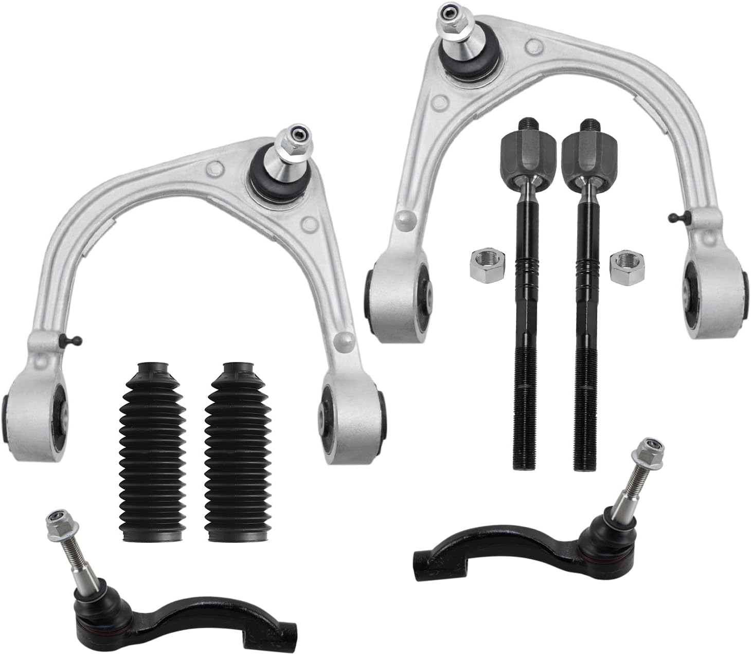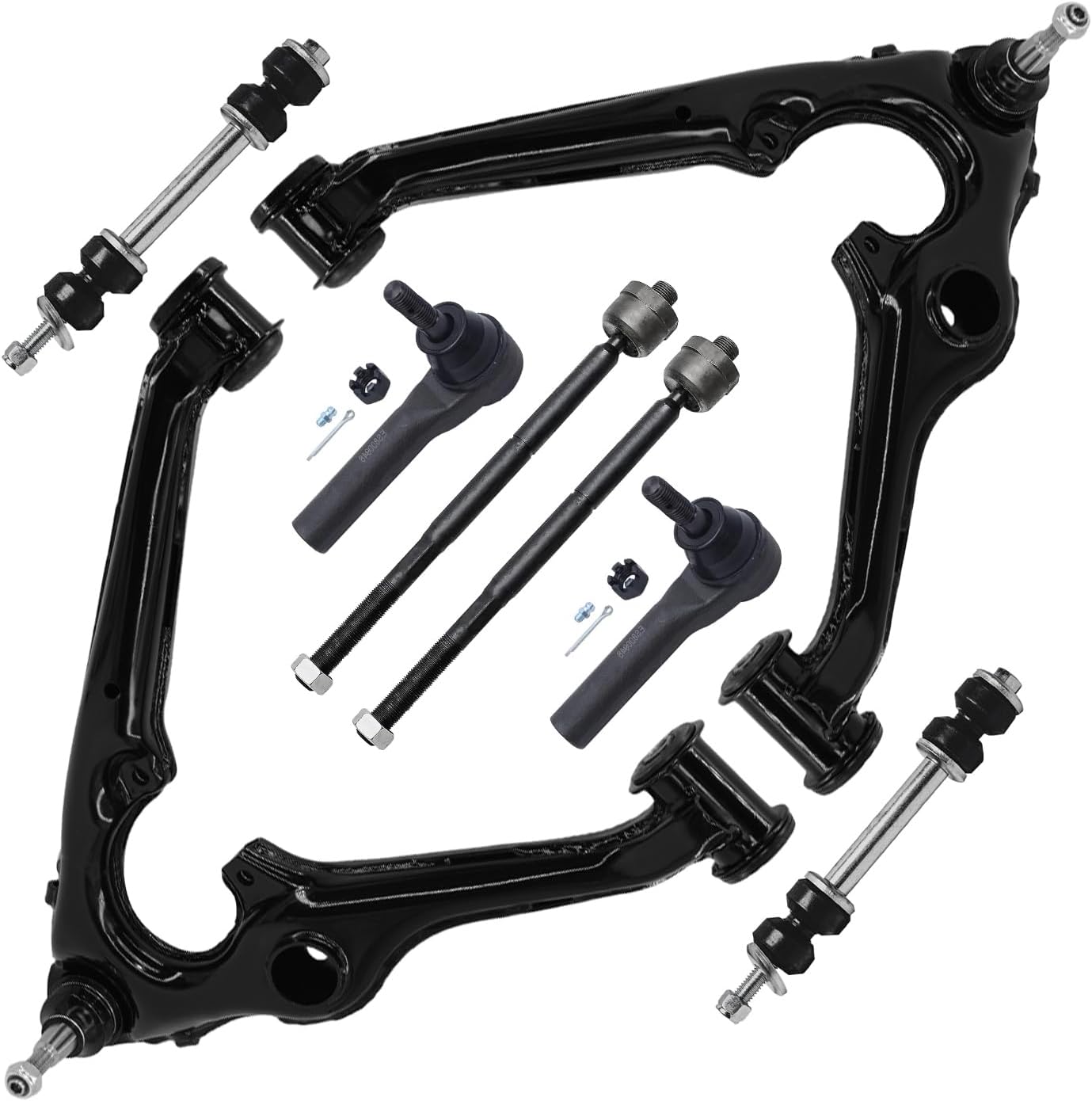 Kit Includes:1x Front Upper Control Arm w/Ball Joint Assembly - Driver Side - K6430741x Front Upper Control Arm w/Ball Joint Assembly - Passenger Side - K6430732x Front Outer Tie Rod Ends - Driver & Passenger Side - ES805742x Front Inner Tie Rod Ends - Driver & Passenger Side - EV8000982x Front Lower Ball Joints - Driver & Passenger Side - K500286Fitment:Replacement for 2009-2010 Dodge Ram 1500 (with Stamped Steel Arm; 5-Lug; 4WD)Replacement for 2011-2012 Ram 1500 (with Stamped Steel Arm; 5-Lug; 4WD)Introduction:Detroit Axle is a leading global retailer and distributor of OE re-manufactured and new aftermarket auto parts. We are committed to providing first-class products and outstanding customer service at an incredible value. Our rapidly-expanding product line includes CV Axles, Wheel Hub & Bearings, Suspension & Chassis parts, Complete Strut Assemblies, Shock Absorbers, Drilled & Slotted Brake Rotors, Conventional Brake Rotors, Ceramic Brake Pads, Brake Fluids, Brake Cleaners, Rack & Pinion Assemblies, Gearboxes, Drive Shafts, Transmissions, Brake Calipers, Wheel Lug Nuts, and more. With over 30 years of experience, we are proud that millions of customers around the world rely on Detroit Axle parts. We have two Metro Detroit storefront locations on the north and west sides of the city. Our flagship location, in the heart of Detroit’s 8 Mile Road, is a combined retail storefront and over 180,000 square feet of the warehouse that serves as our global distribution center.