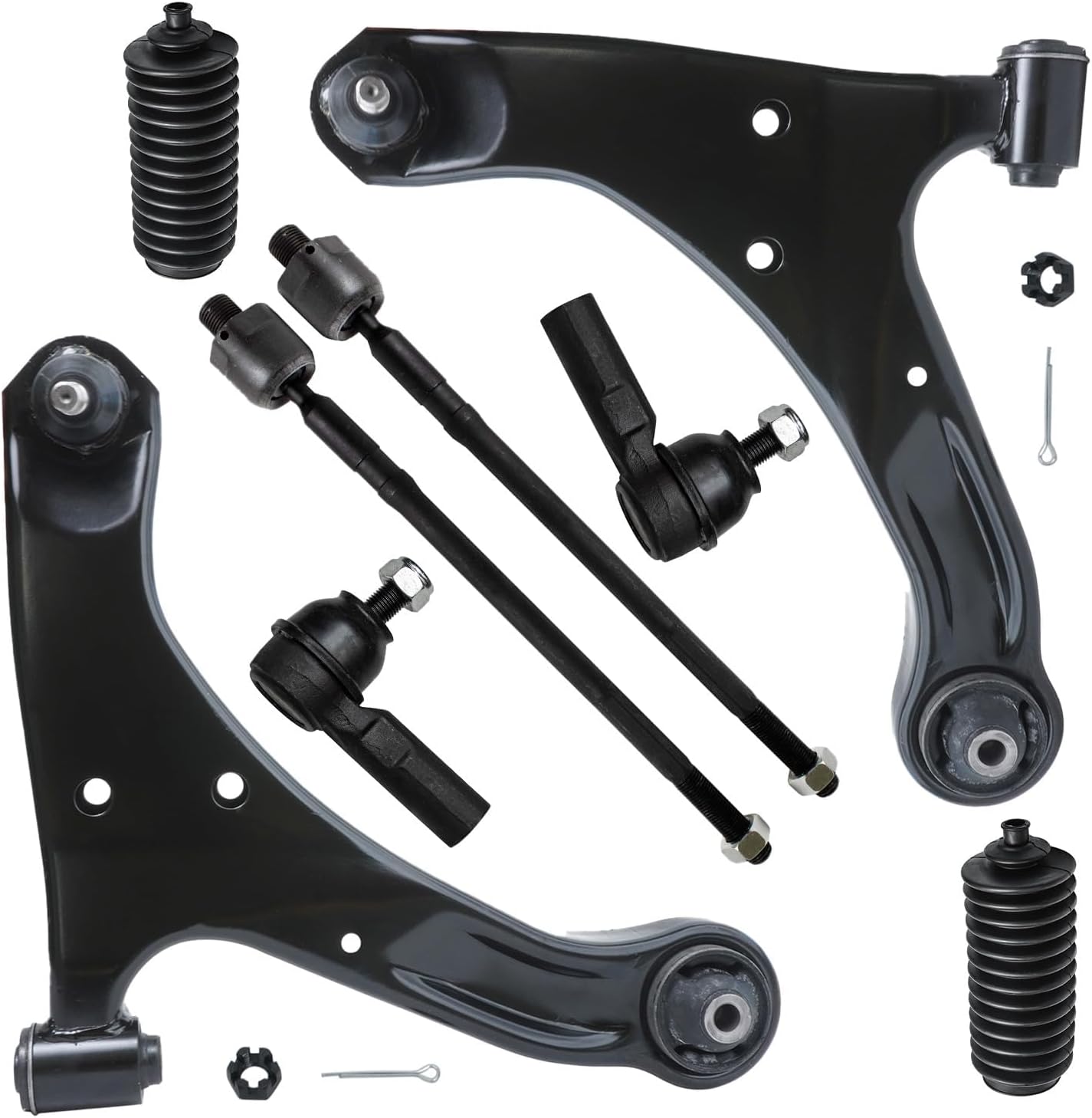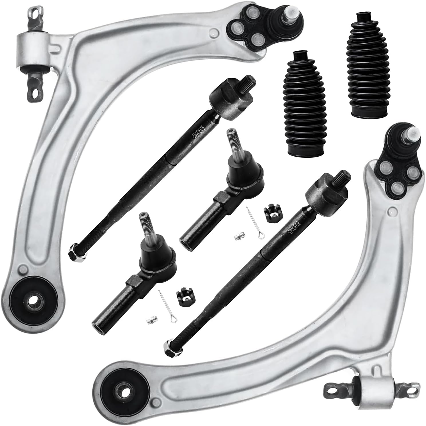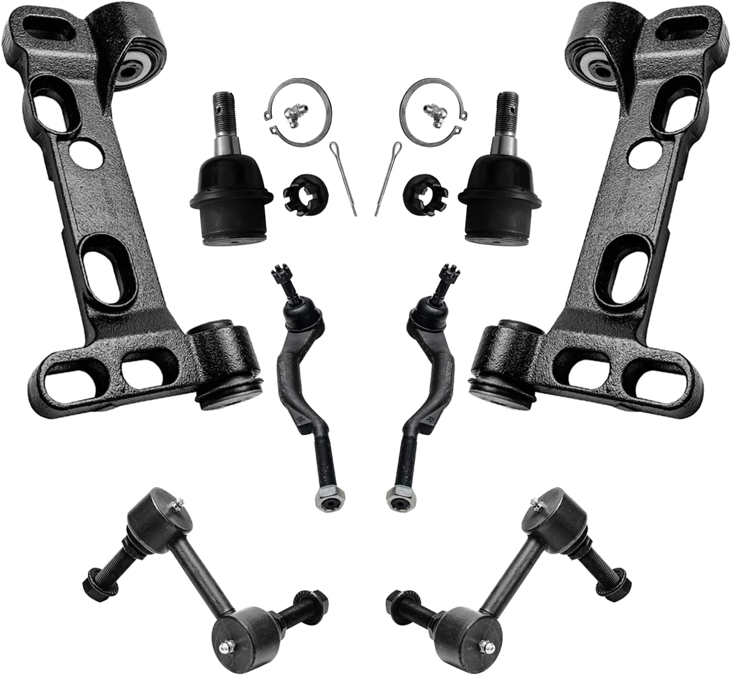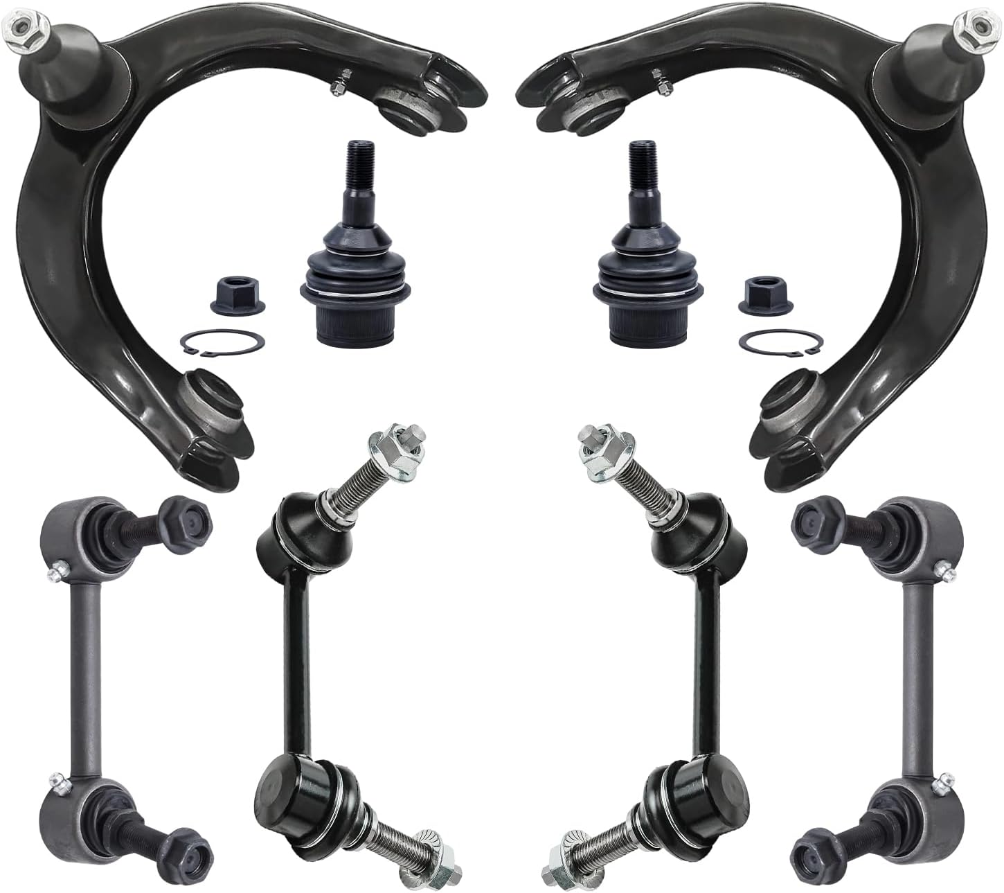 Kit Includes:1x Front Upper Control Arm w/Ball Joint Assembly - Driver Side - K6430741x Front Upper Control Arm w/Ball Joint Assembly - Passenger Side - K6430732x Front Outer Tie Rod Ends - Driver & Passenger Side - ES805742x Front Inner Tie Rod Ends - Driver & Passenger Side - EV8000982x Front Lower Ball Joints - Driver & Passenger Side - K500286Fitment:Replacement for 2009-2010 Dodge Ram 1500 (with Stamped Steel Arm; 5-Lug; 4WD)Replacement for 2011-2012 Ram 1500 (with Stamped Steel Arm; 5-Lug; 4WD)Introduction:Detroit Axle is a leading global retailer and distributor of OE re-manufactured and new aftermarket auto parts. We are committed to providing first-class products and outstanding customer service at an incredible value. Our rapidly-expanding product line includes CV Axles, Wheel Hub & Bearings, Suspension & Chassis parts, Complete Strut Assemblies, Shock Absorbers, Drilled & Slotted Brake Rotors, Conventional Brake Rotors, Ceramic Brake Pads, Brake Fluids, Brake Cleaners, Rack & Pinion Assemblies, Gearboxes, Drive Shafts, Transmissions, Brake Calipers, Wheel Lug Nuts, and more. With over 30 years of experience, we are proud that millions of customers around the world rely on Detroit Axle parts. We have two Metro Detroit storefront locations on the north and west sides of the city. Our flagship location, in the heart of Detroit’s 8 Mile Road, is a combined retail storefront and over 180,000 square feet of the warehouse that serves as our global distribution center.