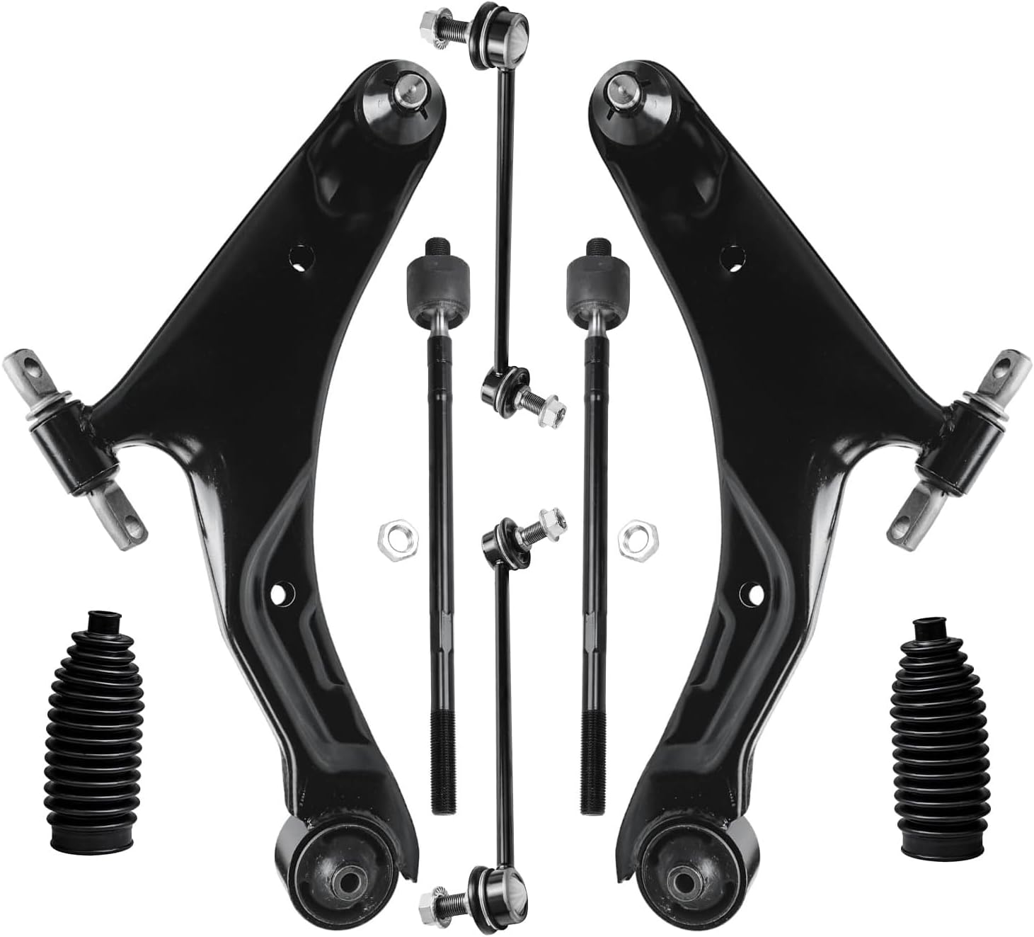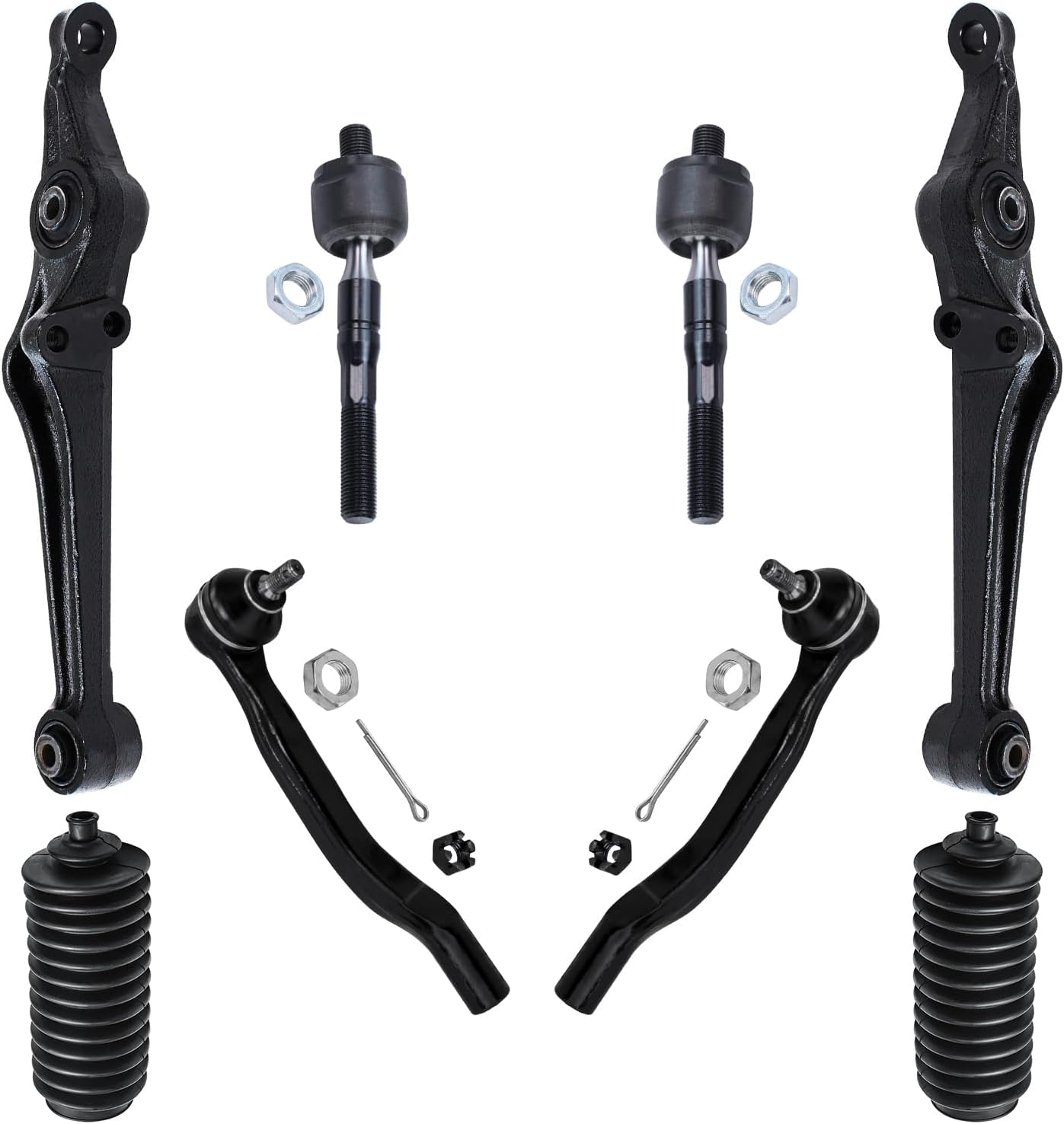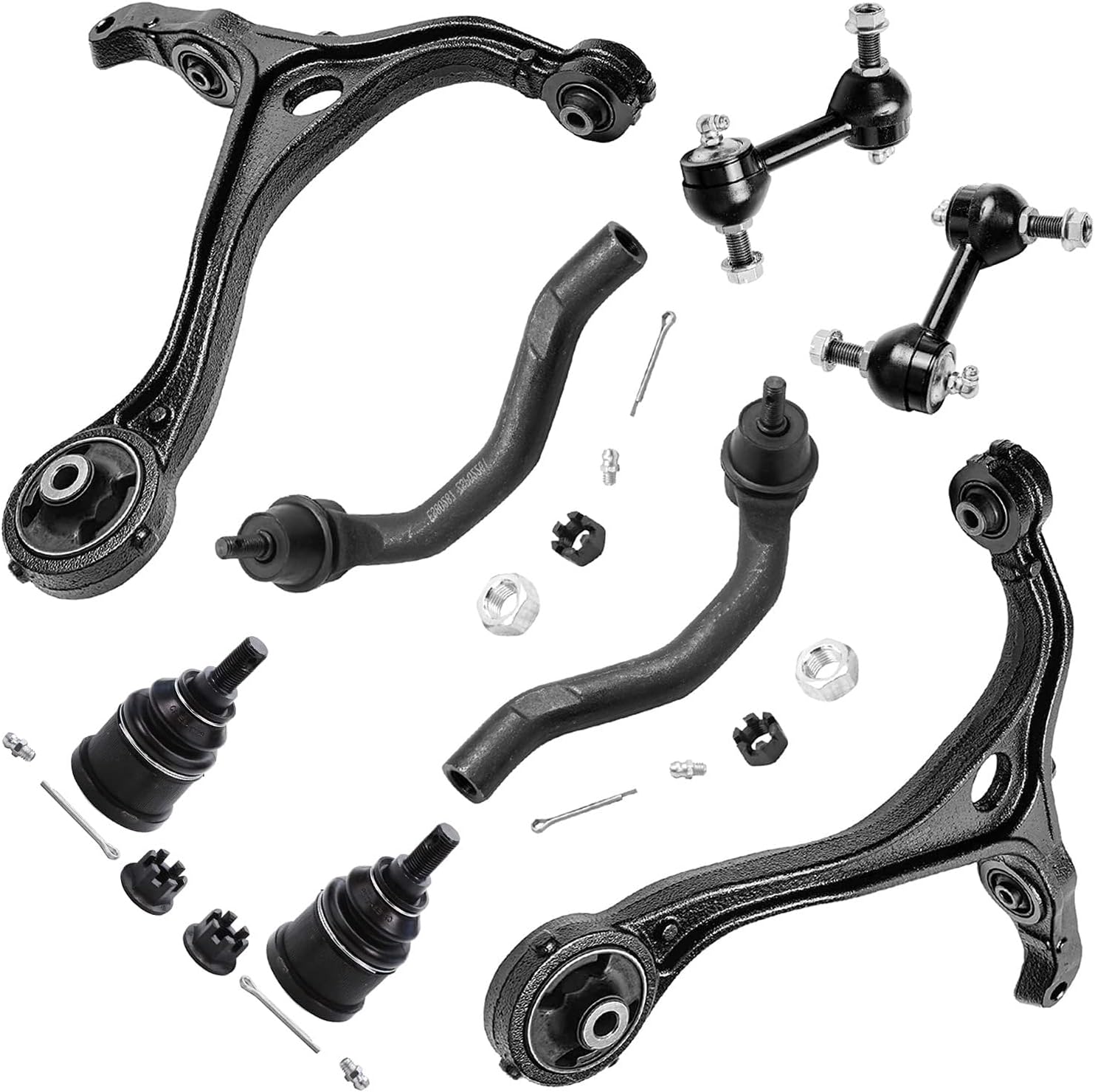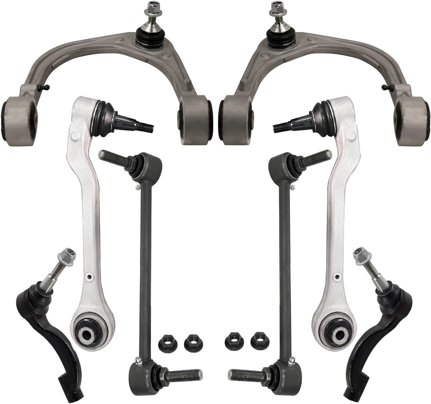 Kit Includes:1x Front Upper Control Arm w/Ball Joint Assembly - Driver Side - K6430741x Front Upper Control Arm w/Ball Joint Assembly - Passenger Side - K6430732x Front Outer Tie Rod Ends - Driver & Passenger Side - ES805742x Front Inner Tie Rod Ends - Driver & Passenger Side - EV8000982x Front Lower Ball Joints - Driver & Passenger Side - K500286Fitment:Replacement for 2009-2010 Dodge Ram 1500 (with Stamped Steel Arm; 5-Lug; 4WD)Replacement for 2011-2012 Ram 1500 (with Stamped Steel Arm; 5-Lug; 4WD)Introduction:Detroit Axle is a leading global retailer and distributor of OE re-manufactured and new aftermarket auto parts. We are committed to providing first-class products and outstanding customer service at an incredible value. Our rapidly-expanding product line includes CV Axles, Wheel Hub & Bearings, Suspension & Chassis parts, Complete Strut Assemblies, Shock Absorbers, Drilled & Slotted Brake Rotors, Conventional Brake Rotors, Ceramic Brake Pads, Brake Fluids, Brake Cleaners, Rack & Pinion Assemblies, Gearboxes, Drive Shafts, Transmissions, Brake Calipers, Wheel Lug Nuts, and more. With over 30 years of experience, we are proud that millions of customers around the world rely on Detroit Axle parts. We have two Metro Detroit storefront locations on the north and west sides of the city. Our flagship location, in the heart of Detroit’s 8 Mile Road, is a combined retail storefront and over 180,000 square feet of the warehouse that serves as our global distribution center.