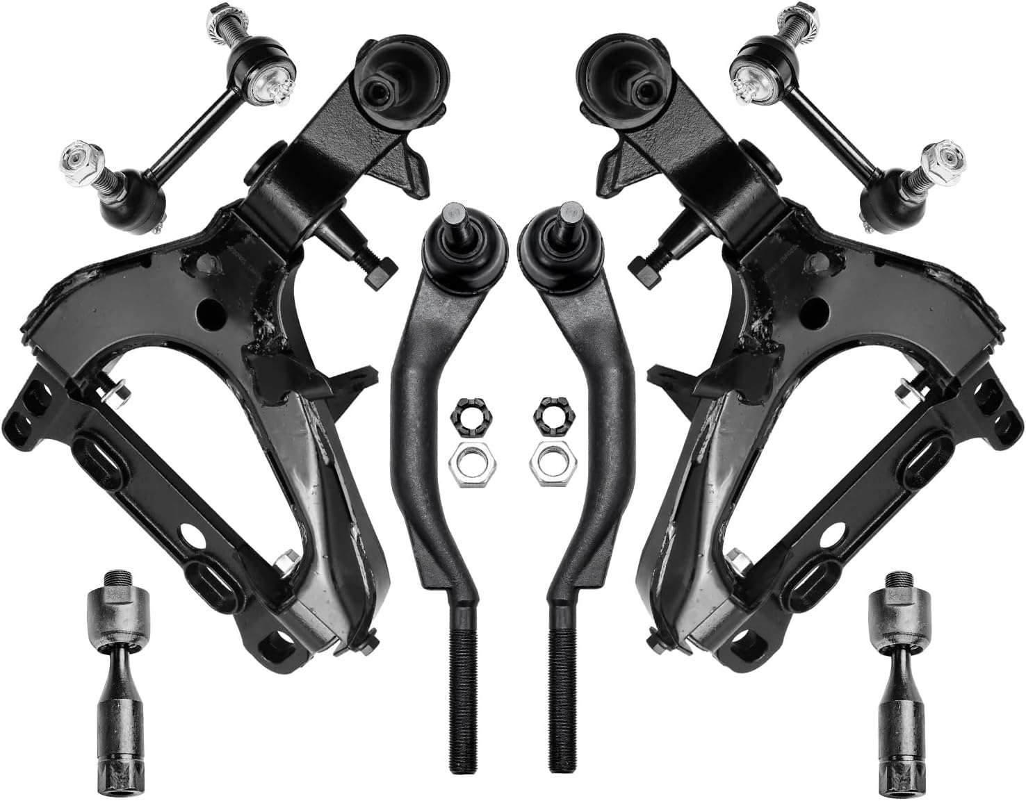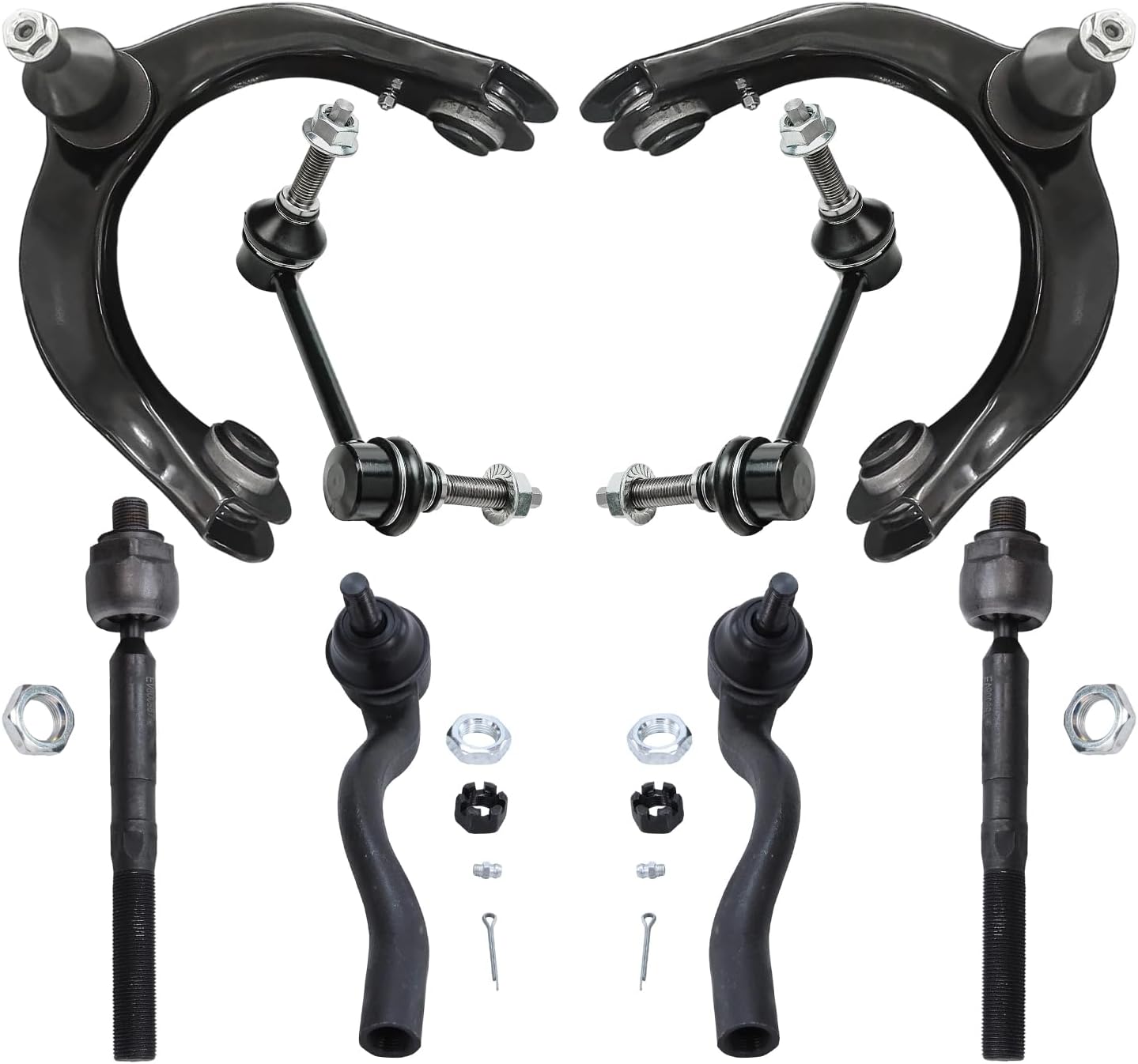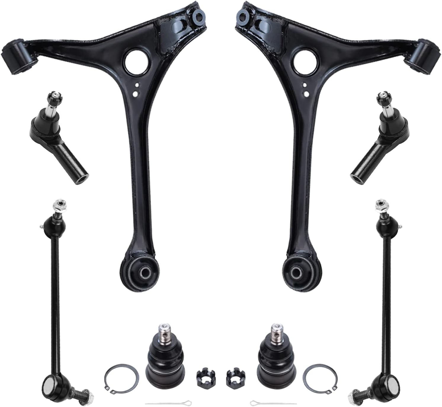 Kit Includes:1x Front Lower Control Arm w/Ball Joint - Driver Side - K6221601x Front Lower Control Arm w/Ball Joint - Passenger Side - K6221591x Front Upper Control Arm Assembly - Driver Side - K6417241x Front Upper Control Arm Assembly - Passenger Side - K6417231x Front Outer Tie Rod End - Driver Side - ES8009661x Front Outer Tie Rod End - Passenger Side - ES8009652x Front Sway Bar End Links - Driver and Passenger Side - K750719Fitment:Replacement for 2013-2019 Nissan NV200 (To Sub Frame)Replacement for 2013-2016 Nissan Sentra (To Sub Frame)Replacement for 2017-2019 Nissan Sentra (1.8L; To Sub Frame)Introduction:Detroit Axle is a leading global retailer and distributor of OE re-manufactured and new aftermarket auto parts. We are committed to providing first-class products and outstanding customer service at an incredible value. Our rapidly-expanding product line includes CV Axles, Wheel Hub & Bearings, Suspension & Chassis parts, Complete Strut Assemblies, Shock Absorbers, Drilled & Slotted Brake Rotors, Conventional Brake Rotors, Ceramic Brake Pads, Brake Fluids, Brake Cleaners, Rack & Pinion Assemblies, Gearboxes, Drive Shafts, Transmissions, Brake Calipers, Wheel Lug Nuts, and more. With over 30 years of experience, we are proud that millions of customers around the world rely on Detroit Axle parts. We have two Metro Detroit storefront locations on the north and west sides of the city.