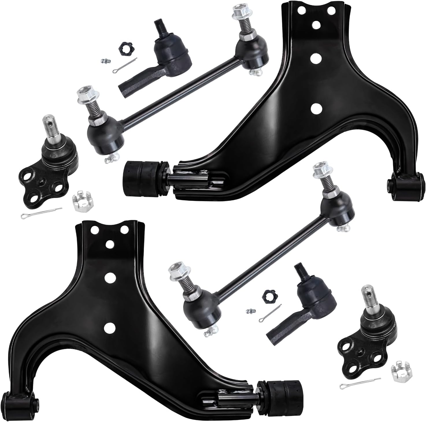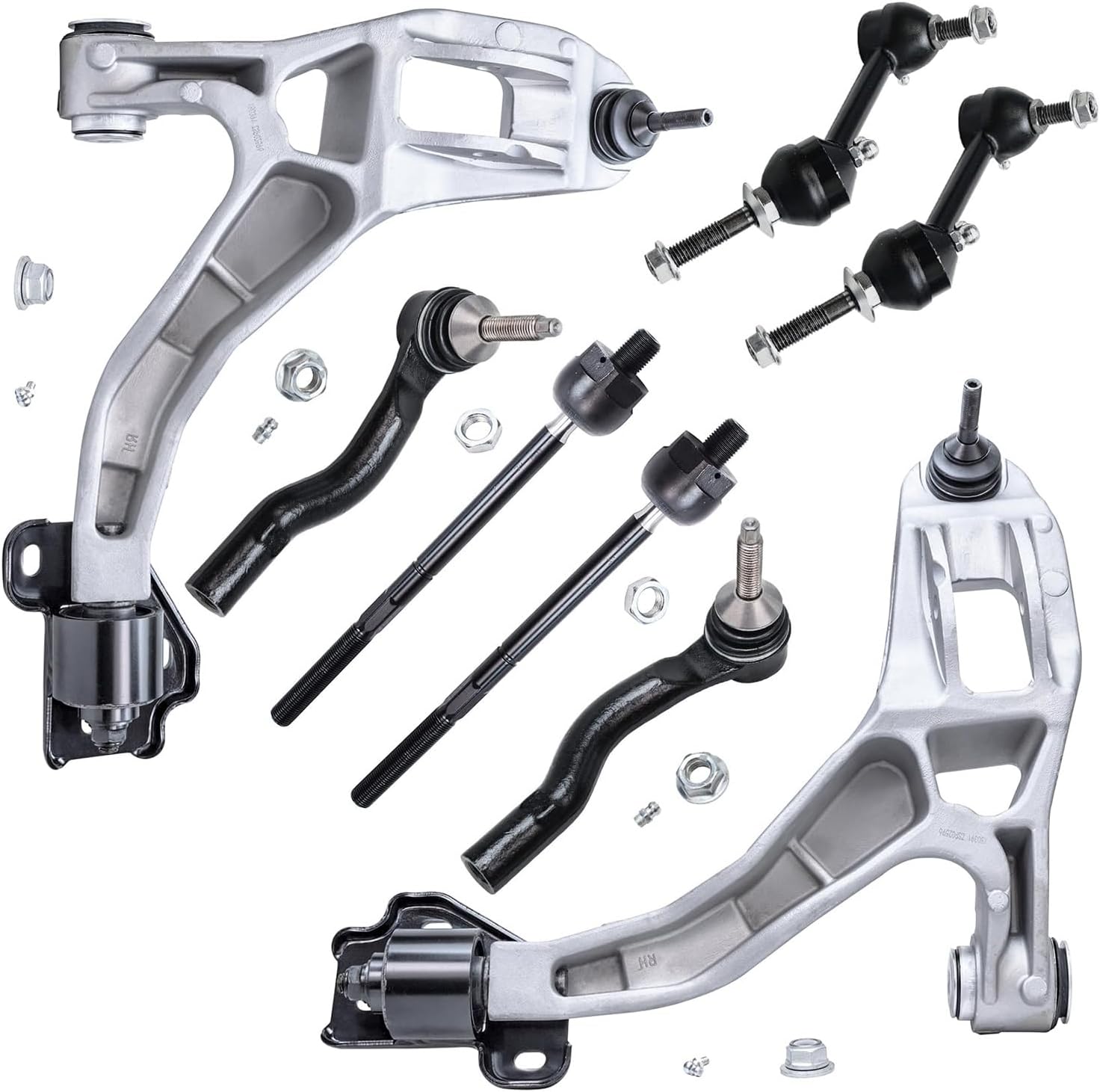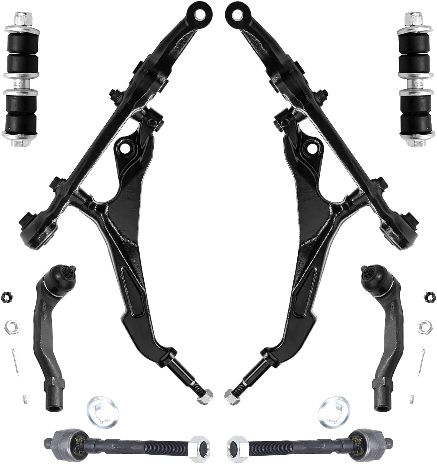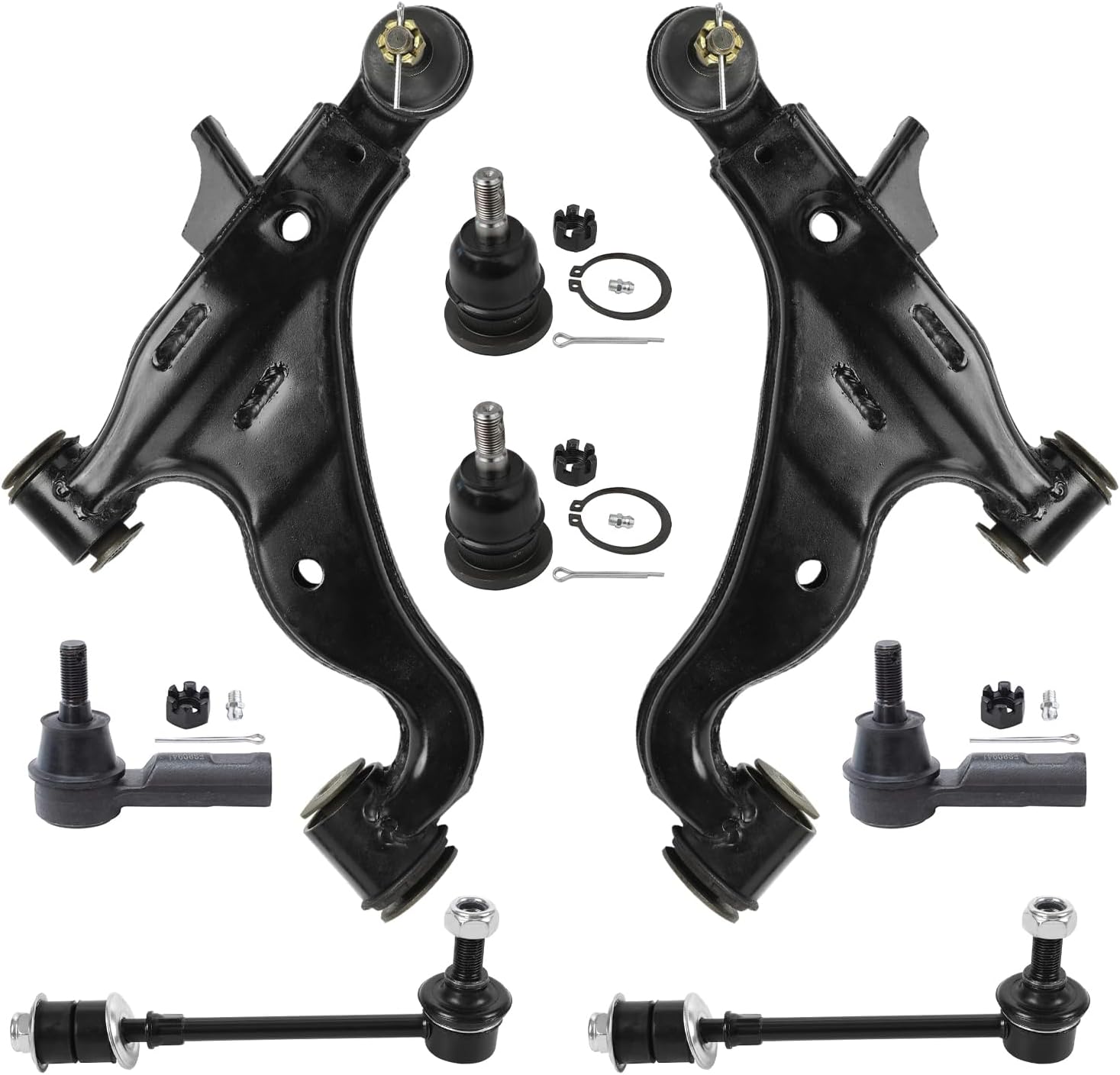 Kit Includes:1x Front Lower Control Arm w/Ball Joint - Driver Side - K6221601x Front Lower Control Arm w/Ball Joint - Passenger Side - K6221591x Front Upper Control Arm Assembly - Driver Side - K6417241x Front Upper Control Arm Assembly - Passenger Side - K6417231x Front Outer Tie Rod End - Driver Side - ES8009661x Front Outer Tie Rod End - Passenger Side - ES8009652x Front Sway Bar End Links - Driver and Passenger Side - K750719Fitment:Replacement for 2013-2019 Nissan NV200 (To Sub Frame)Replacement for 2013-2016 Nissan Sentra (To Sub Frame)Replacement for 2017-2019 Nissan Sentra (1.8L; To Sub Frame)Introduction:Detroit Axle is a leading global retailer and distributor of OE re-manufactured and new aftermarket auto parts. We are committed to providing first-class products and outstanding customer service at an incredible value. Our rapidly-expanding product line includes CV Axles, Wheel Hub & Bearings, Suspension & Chassis parts, Complete Strut Assemblies, Shock Absorbers, Drilled & Slotted Brake Rotors, Conventional Brake Rotors, Ceramic Brake Pads, Brake Fluids, Brake Cleaners, Rack & Pinion Assemblies, Gearboxes, Drive Shafts, Transmissions, Brake Calipers, Wheel Lug Nuts, and more. With over 30 years of experience, we are proud that millions of customers around the world rely on Detroit Axle parts. We have two Metro Detroit storefront locations on the north and west sides of the city.