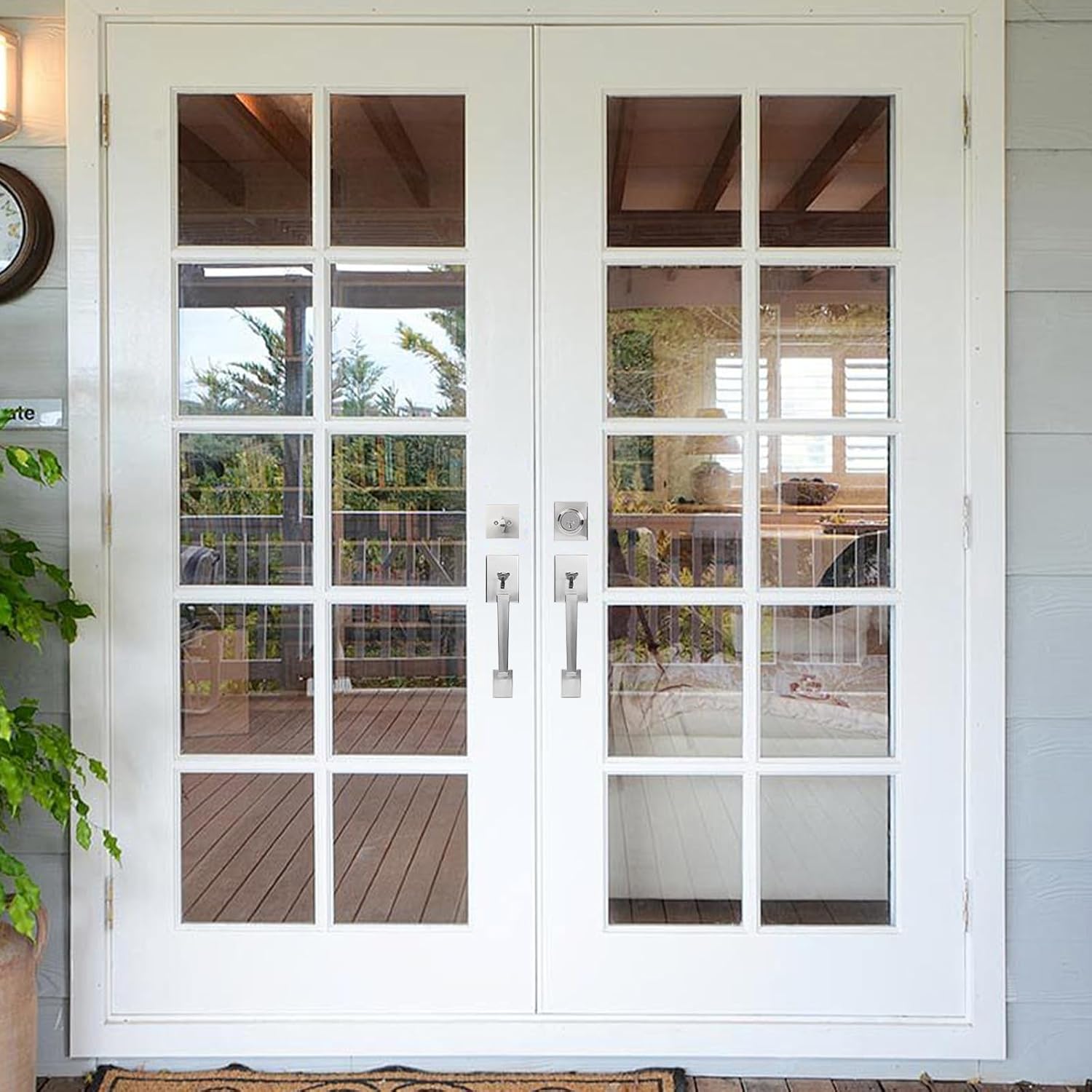 LITLANDSTAR Universal & Reversible Entry Door Handle Set is crafted from heavy-duty stainless steel and advanced electroplating technology, boasting exceptional corrosion resistance and durability, enduring over 250,000 opening cycles for long-lasting performance. Satin nickel finish offers a sophisticated, contemporary look that complements a wide range of architectural styles. Crafted for both style and functionality, this door lock handle and deadbolt set delivers reliable protection and effortless convenience for residential and light commercial entryways. Specifications: Material: Stainless Steel Finish: Satin Nickel Fit Door Thickness: 1-3/8" to 1-3/4" Backset: Adjustable (2-3/4" or 2-3/8") Bore Hole Size: 2-1/8" (54mm) Cross Bore: 1" (for deadbolt) Handing: Reversible (Fits both left and right-handed doors.) Lock Mechanism: Single Cylinder Deadbolt (Keyed Outside, Thumb Turn Inside) Note: Please measure the door thickness and backsets before purchasing. Features: 1.All-In-One Door Lock Set--Everything you need in one box, including all accessories and detailed installation instructions. 2.Elegant Door Handle Set-- Satin nickel finish resists fingerprints, scratches, and wear for a clean, polished look that lasts. 3.Secure Single-Cylinder Deadbolt--The keyed exterior cylinder allows for easy key entry from the outside, while the simple thumb turn on the interior ensures quick exit, ensuring a smoother door switching experience. 4.Smooth Ergonomic Lever Design--The smooth and modern lever handle ensures a comfortable grip and effortless operation for all ages.