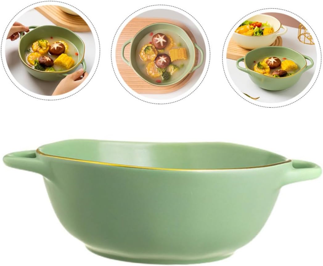 Package Include 1 x Salad Bowl Characteristics -Product Info:Double ear baking bowl -Capacity: 1200ML kitchen bowl -Material: ceramic - Suitable for home, bakery, pizza shop, breakfast shop, food store, etc serving dishes. - The nonstick surface makes your pizza easy to demould, which is beautiful and delicious serving bowls with handles. - The storage bowl is made of high-end ceramic material, not easy to deform. - The salad bowl is perfect for home, restaurant, hotel, cafe and professional use bowl with handle. - Smooth surface without burrs, easy to clean, keep it clean and bowls.Goods Descriptionbaking is small and , which can make your food look more tempting and delicious.soup bowls with handles Are you looking for a practical and baking plate? Are you looking for a sturdy and reliable steamed food dish with multiple functions? If yes, please check our products carefully! Our multi-functional bowl is made of will surely meet your needs