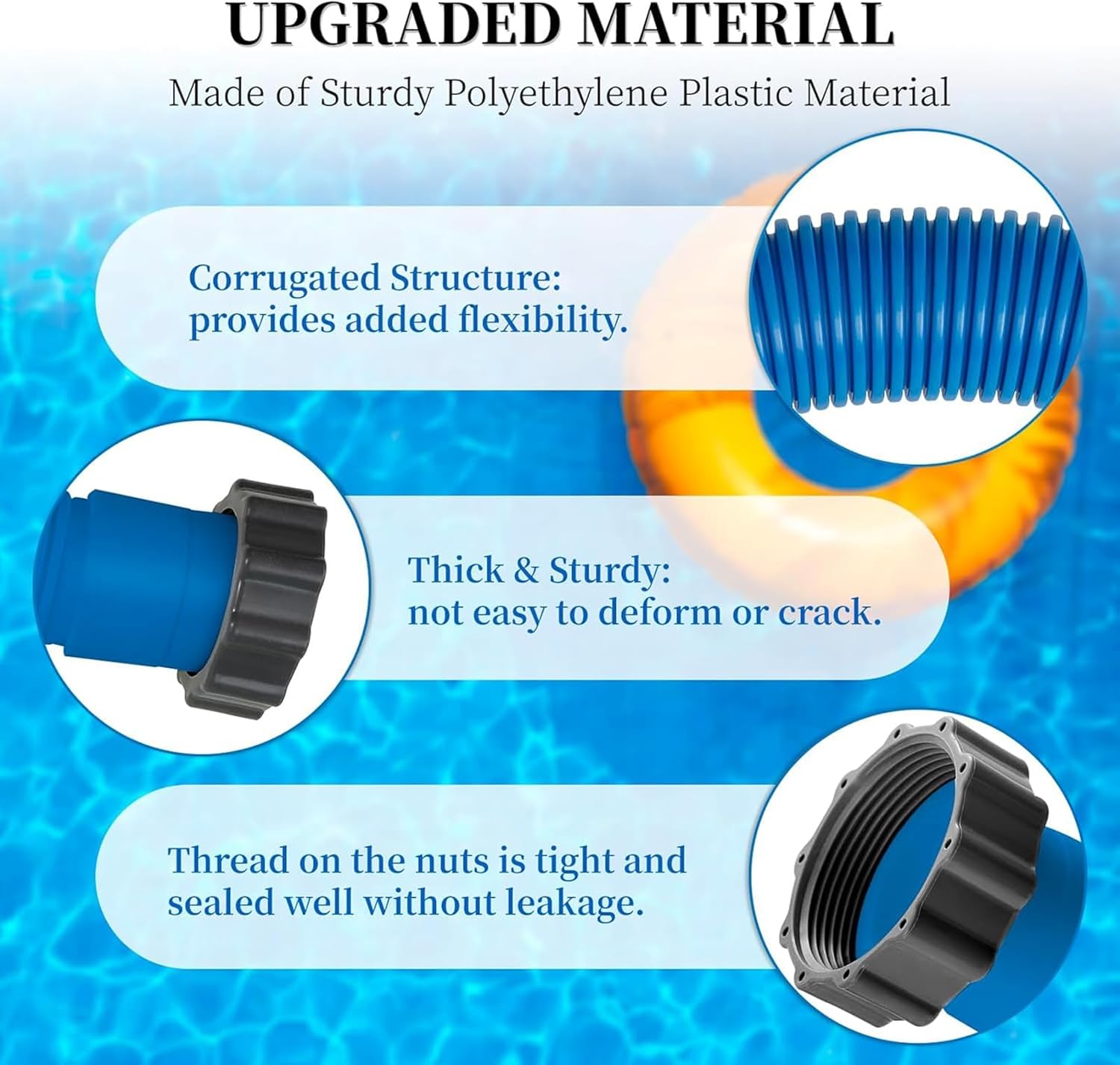 Essential 1.5" Diameter Pool Hose Replacement Pool Hose Long Accessory Pool Hose For 29060E ModelFeatures:Achieve a pristines pool with our pool hose replacement!Our pool hose offer flexibility and easy installation.Perfect for pool owners and maintenance professionals, our pool hose works with various filter systems.From backyard pool parties to public swimming facilities, our pool hose ensures efficient water circulations.Maintain your pool easily with our trusted and pool hose.Specifications:Applicable Model: For 1500GPH, 2500GPH, 29060ELength: Approx. 5.91inch(150cm)Diameter: Approx. 1.5inch(38mm)Package Includes:1x Pool HoseOr2x Pool HosesOr4x Pool HosesNote:Please allow 1-2cm errors due to manual measurement. Please make sure you donot mind before order.Due to the differences between different monitors, the picture may not reflect the actual color from the item.