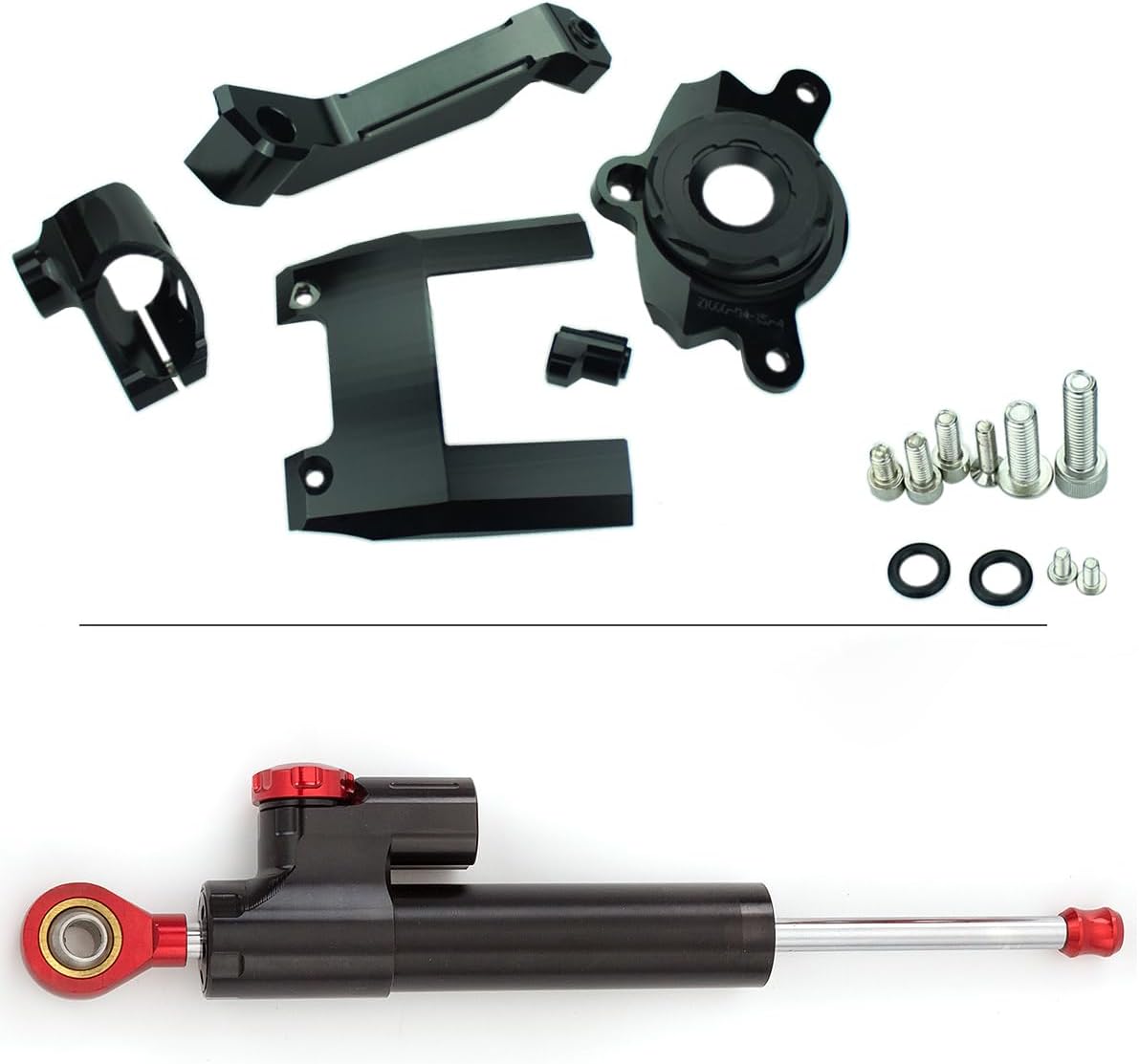Fitment: for Z1000 2016-2017 Feature: 100 % brand new Material:T6061-T6 Aluminum (High Quality Material, Light grade & Light-weight) Finish: CNC & Anodized (durable and not easy to fade) Color : Show as pictures If you need other colour,please leave me a note after payment, thanks! Weight: 1 LB Others: Perfect fit and no modification is needed, No installation instructions Extraordinary advantages: 1.His risk is minimal. High stability 2.The dampers are fully adjustable and can be adjusted in 22 positions so there will be a position for every rider 3.The twin-tube clamp ensures that the clamping force of the tube clamp does not obstruct the piston 4.Nitrogen pressurised heat expansion reservoir prevents the forming of air bubbles 5.Mounting kits went through countless tests through any riding conditions Package Included: 1x Adjustable Steering Damper & Stabilizer Mounting Kit Full Set Note: 1.After installation, turn the head to the very right and very left to check whether there is enough room for the activity of steering damper or not 2.Check if the steering damper and its kit reach the motorbike or oil tank his kind of risk to a bare minimum. Tank slappers and vibrations are intercepted by the damper About after-sales service: Provide three months free warranty We provide high quality products and best service to each customer Everyone, If you have any questions, please do feel free to connect with us