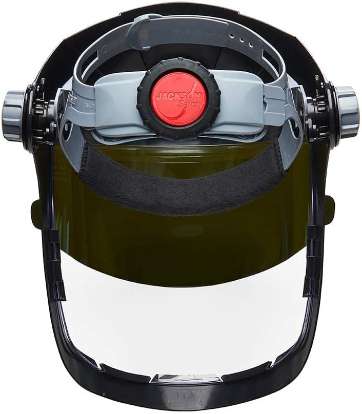 The Quad 500 is a supreme multi-purpose face shield designed to offer maximum above-the-neck protection for almost every application including grinding, cutting, oxy/acetylene applications, plasma cutting, and much more. Made with an extra-large crown to provide added top of head protection. Integrated side and chin guard provides maximum protection against splash and flying debris. Extra-large window featuring premium Sta-Clear coating provides superior panoramic views and fog-free results. Exclusive 370 Speed Dial ratcheting headgear provides maximum comfort and fit. Designed to be used with most goggles, respirators, and safety glasses. Optional Shade 5 and 8 flip-up visors deliver unmatched versatility and uninterrupted protection. Clear and flip windows are made with detents that conveniently lock in both the up and down position.