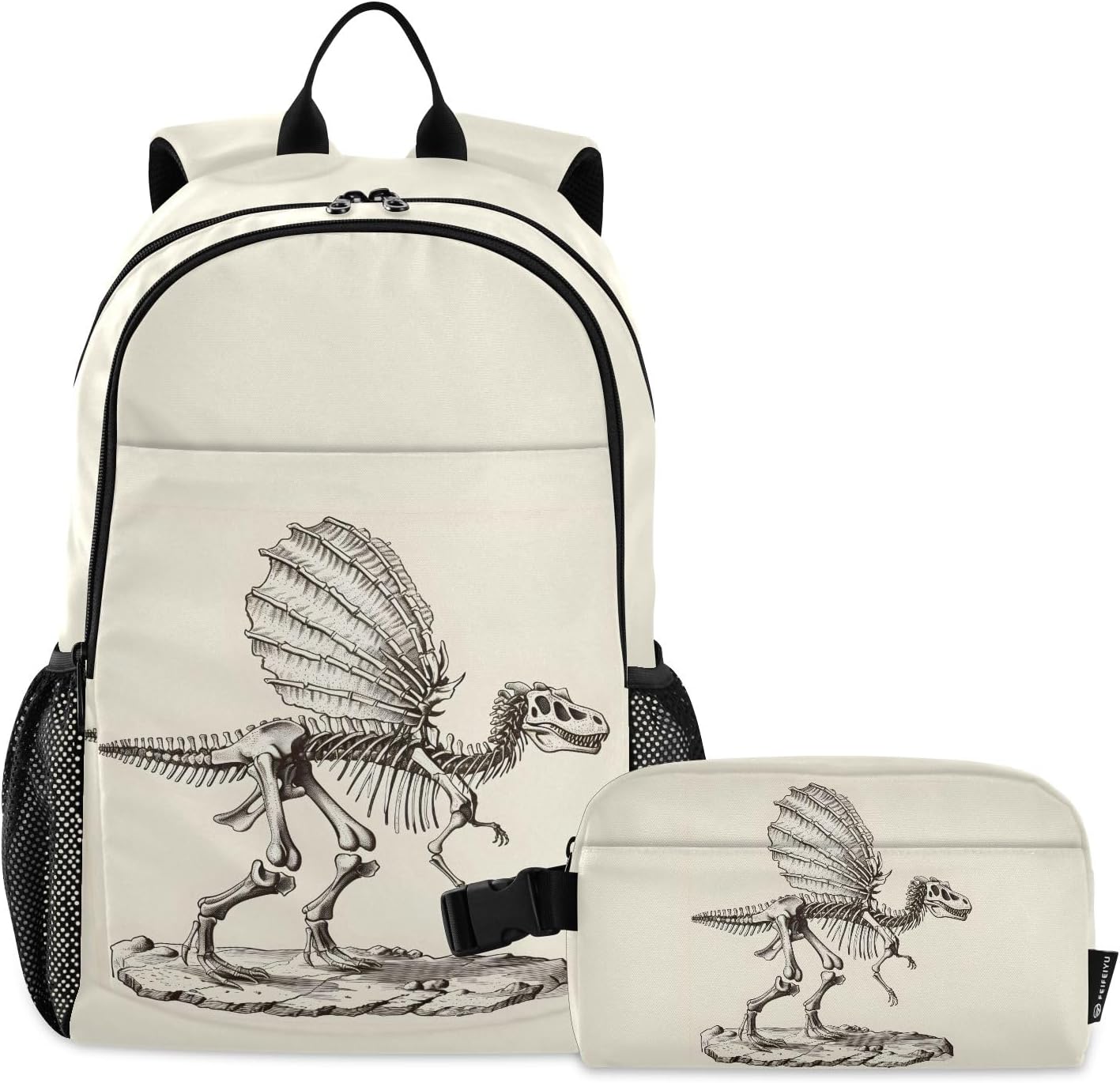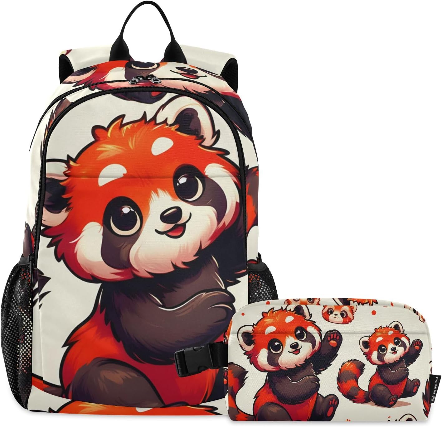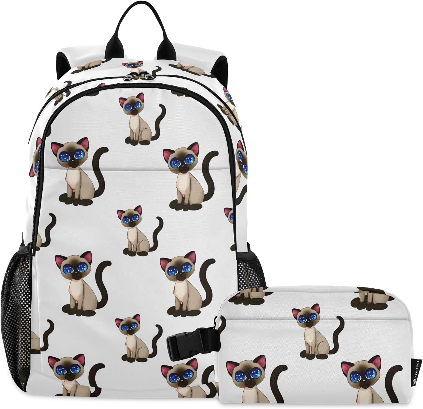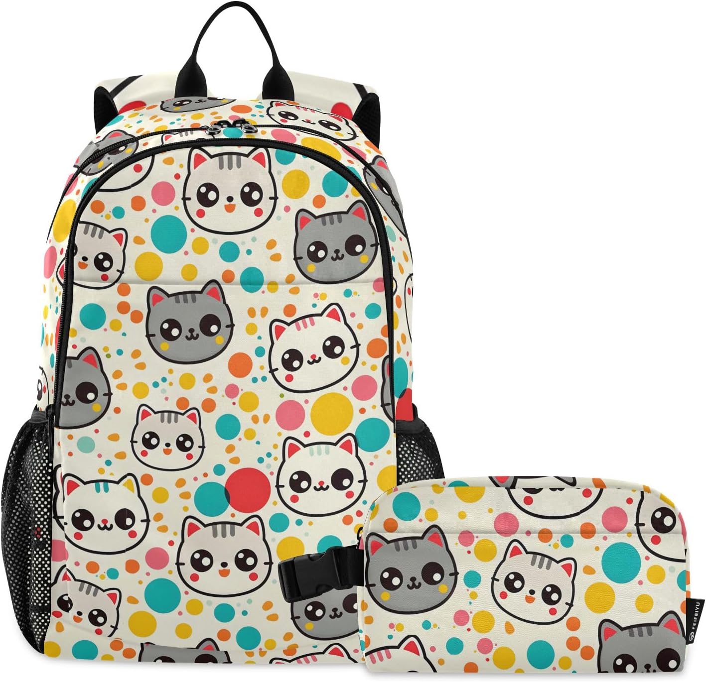 [ Material Description ]: Nylon ( polyester fiber ) [ Size Description ]: School bag: 30*16*47 cm / 11.8*6.3*18.5 in Meal bag: 23*13*14 cm / 9*5.1*5.5 in [ Product Description ]: School bag + Meal bag set School bag: includes a main bag, a front bag, a front zipper pocket and double side pockets. The main bag contains a computer slip pocket (within 15.6 inches), a slip pocket and a small zipper pocket, which can hold documents, mobile phones, pens and other items. Double zipper pullers and two-way opening design are more convenient to use. The straps are comfortable and the bag is very light, which can reduce the burden when used outside. The antique nylon fabric is shiny and the fabric is scratch-resistant and has a delicate feel. Meal bag: a main bag and a front pocket, which are compact and lightweight. The front pocket can store paper towels and other small items. The buckle handle is comfortable and easy to carry, making it easy to free your hands. The food-grade aluminum foil inside has a good thermal insulation effect, does not take up oil stains, and can be wiped. The whole package has a beautiful printing personality. [ Occasion Description ]: Outing, shopping, office, school, traveling, going out, etc. [ Washing Instructions ]: The school bag is washable, but the lunch bag is not washable. Partial scrubbing is required. Do not dry clean or iron.