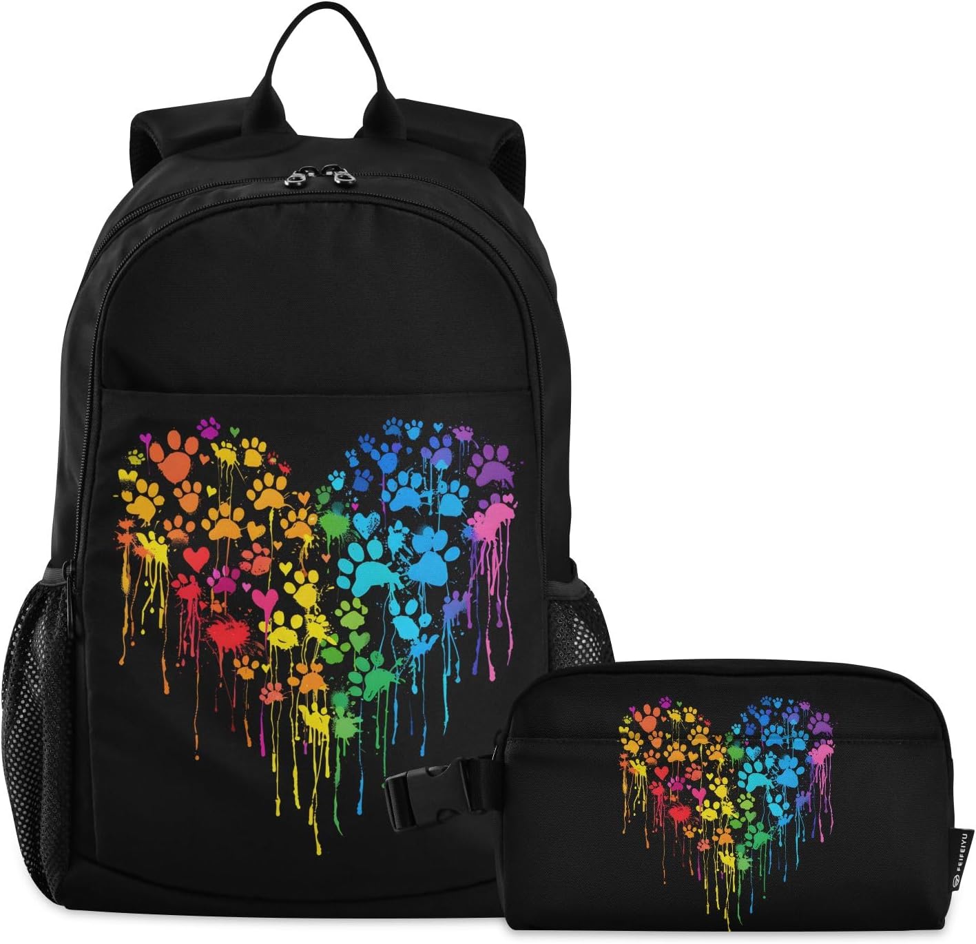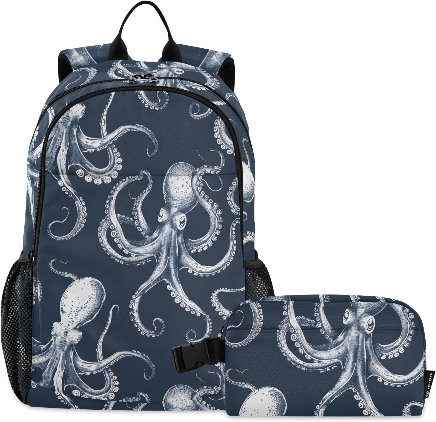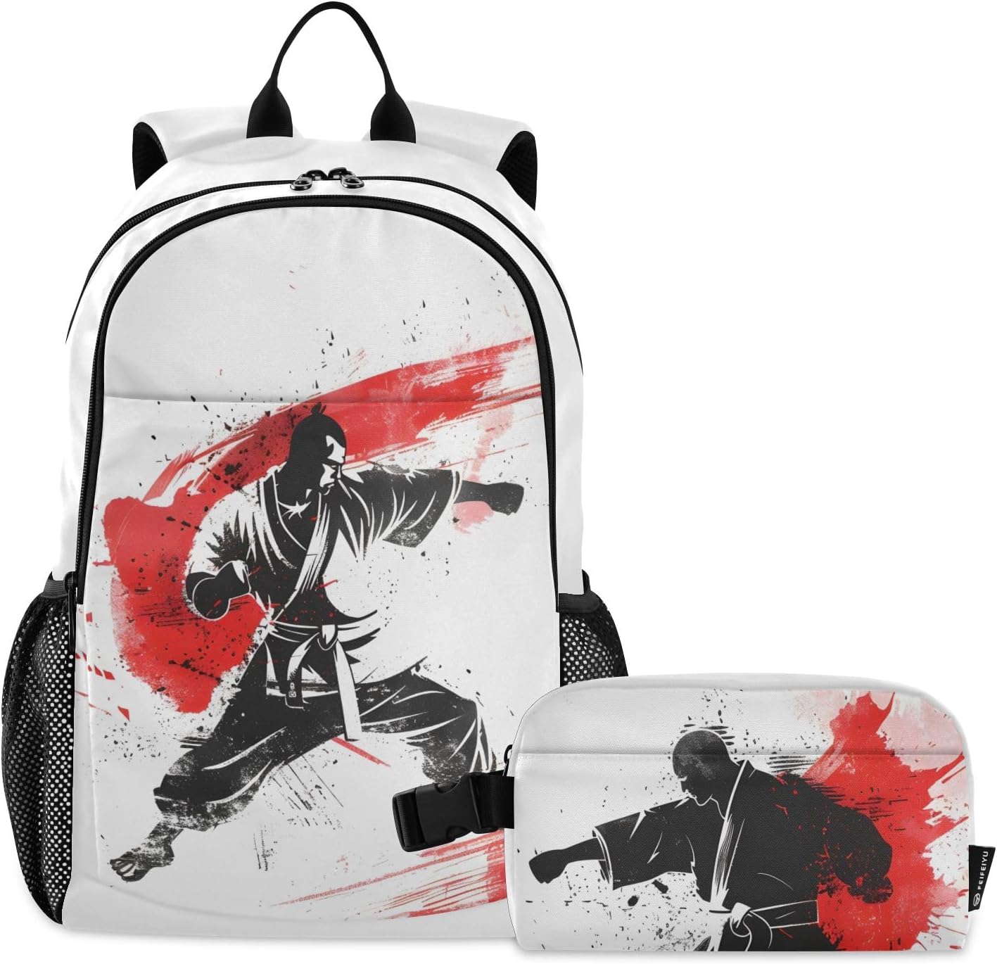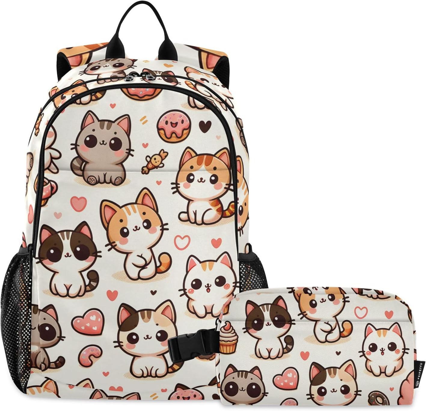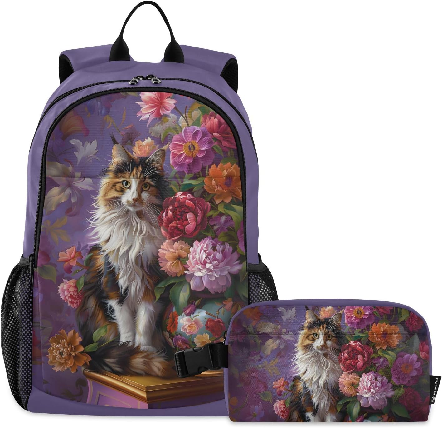 [ Material Description ]: Nylon ( polyester fiber ) [ Size Description ]: School bag: 30*16*47 cm / 11.8*6.3*18.5 in Meal bag: 23*13*14 cm / 9*5.1*5.5 in [ Product Description ]: School bag + Meal bag set School bag: includes a main bag, a front bag, a front zipper pocket and double side pockets. The main bag contains a computer slip pocket (within 15.6 inches), a slip pocket and a small zipper pocket, which can hold documents, mobile phones, pens and other items. Double zipper pullers and two-way opening design are more convenient to use. The straps are comfortable and the bag is very light, which can reduce the burden when used outside. The antique nylon fabric is shiny and the fabric is scratch-resistant and has a delicate feel. Meal bag: a main bag and a front pocket, which are compact and lightweight. The front pocket can store paper towels and other small items. The buckle handle is comfortable and easy to carry, making it easy to free your hands. The food-grade aluminum foil inside has a good thermal insulation effect, does not take up oil stains, and can be wiped. The whole package has a beautiful printing personality. [ Occasion Description ]: Outing, shopping, office, school, traveling, going out, etc. [ Washing Instructions ]: The school bag is washable, but the lunch bag is not washable. Partial scrubbing is required. Do not dry clean or iron.