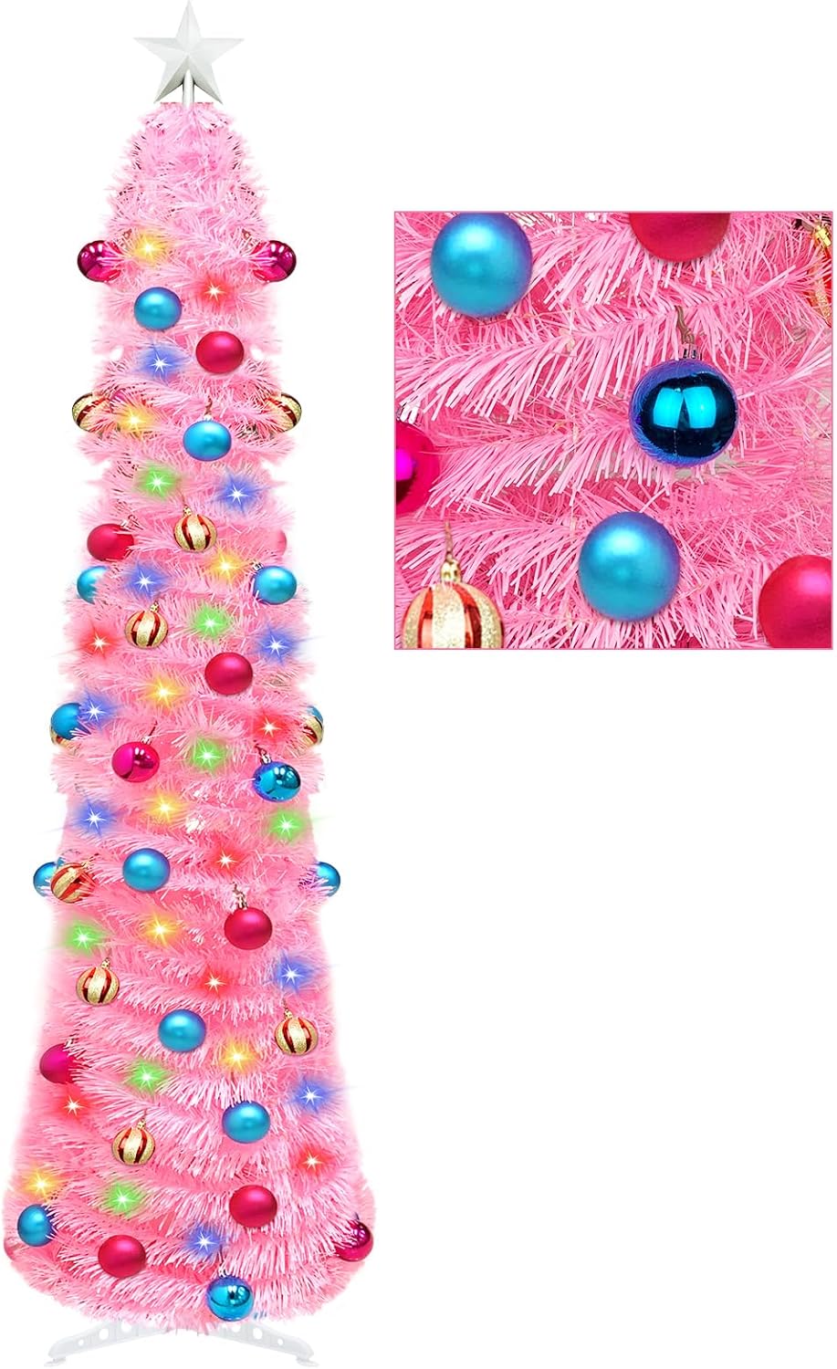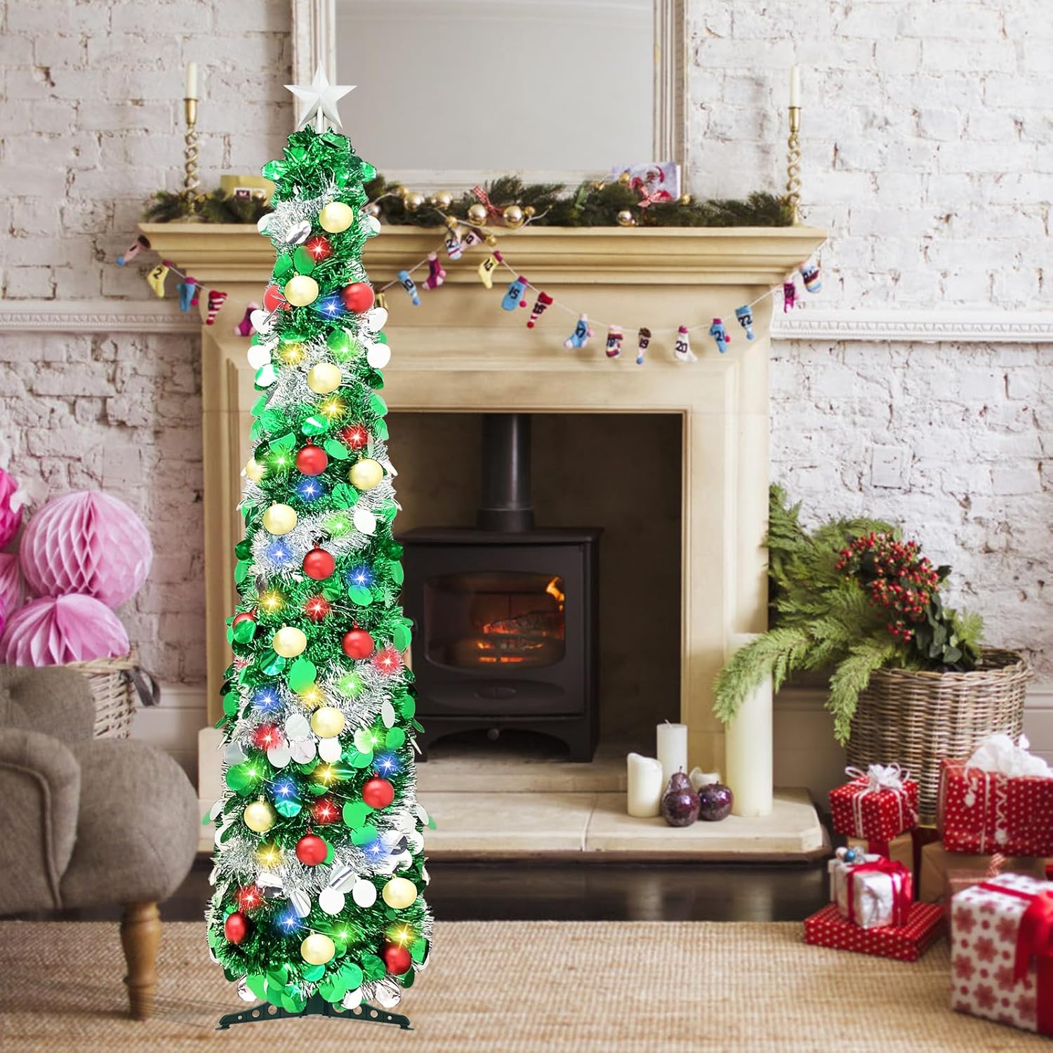 5 Ft Artificial St Patrick's Day Tree Pop-Up Collapsible Pencil St Patrick's Day Trees with 100 Warm, Bright Shamrock Artificial Tinsel Pencil Tree Star for Indoor Outdoor Decorations