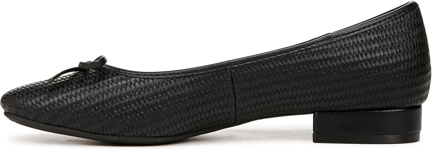 A classic ballet flat with a standout woven texture. These slip on shoes are versatile, timeless, and trend-right. Faux leather upper with a subtle square toe, slip-on fit, woven texture, feminine bow detail, and lightweight design. Linings crafted from partially recycled materials. Soft System® comfort package provides all-day support, flex, and cushioning. Premium comfort and eco-conscious design with LifeStride In Motion® technology, crafted with two layers of lightweight foam for shock absorption & rebound, ultra-flexible soles, and partially recycled materials. Traction sole for extra stability. Just Right Height 3/4 inch block heel.