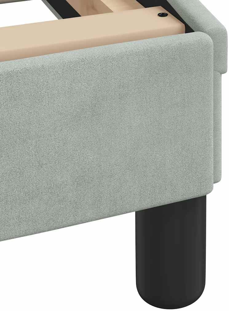 This stylish light grey velvet bed frame is all about comfort and elegance for your bedroom. With a modern design featuring clean lines, it fits right into various styles while adding a touch of class.Modern Design: The sleek look of this bed frame boosts any bedroom vibe.Ample Storage: Loads of hidden space for your stuff.High-Quality Material: Made with soft velvet upholstery that feels luxurious and enhances your space.Comfortable Backrest: Features a padded headboard for max comfort while sitting up, great for reading or winding down.Durable Construction: Built with solid pine wood and metal, itâ€s tough and stable, comfy for two sleepers.Color: Light GreyShape: RectangularMaterial: Fabric VelvetIndoor/Outdoor: Indoor OnlyCover Included: NoRoom: BedroomCapacity: 72 x 84 in mattressMaximum Number of People: 2Dimensions: 74.0 x 90.9 x 29.3 in (W x L x H)Surface Height: 29.3 inSwings: NoDelivery Contains: Bed frame with headboardAssembly Required: YesRecommended Number of People for Assembly: 2