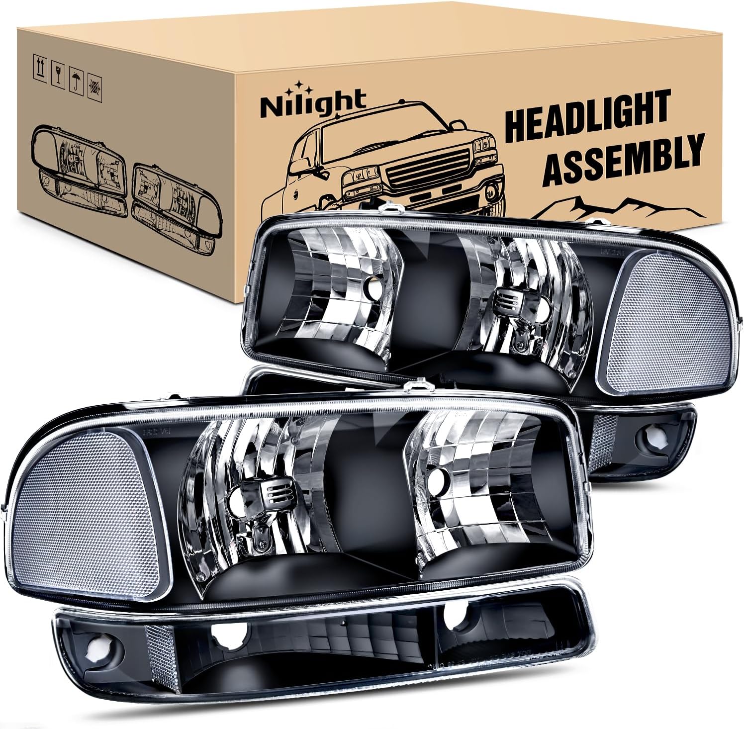 Nilight Headlight Assembly Replacement 1999 2000 2001 2002 2003 2004 2005 2006 Sierra Yukon,Chrome Housing Clear Corner Clear Lens,Headlights Assembly