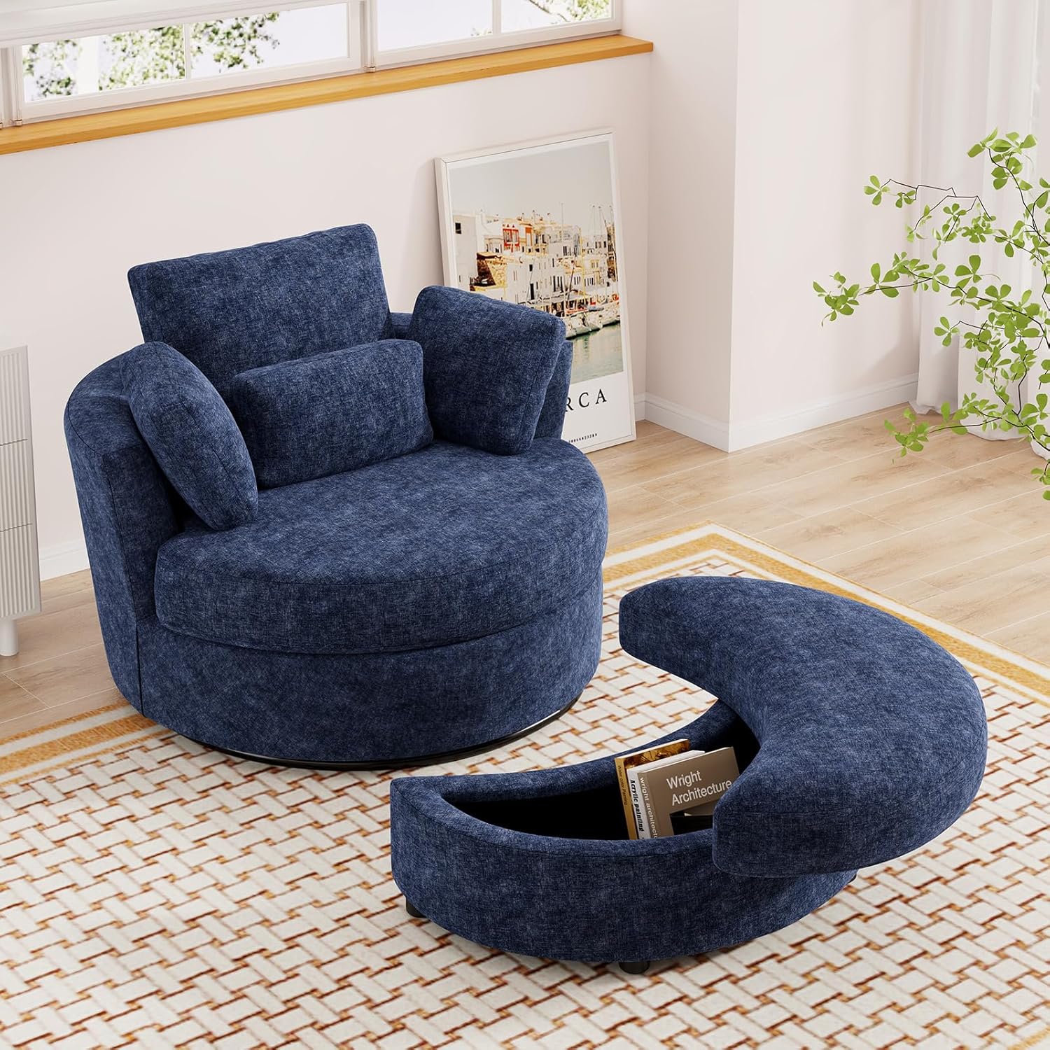 The ergonomically designed swivel chair has a wrap-around backrest and curved armrests, as well as a spacious seat cushion, which not only provides ample safety, but also provides more support and comfort. You can sit on it in any position, read a book, or Watch TV or take a nap and relax in the swivel chair all day long.The elegant and simple swivel barrel chair will be a beautiful addition to your modern home, perfect for your living room, bedroom, office, nursery, dormitory, club or small space.Product Details:Material: Teddy fabric,metal base,solid wood frame,high-density foamOverall Dimensions:39.5"D* 42W* 32.5"HWeight Capacity: 500 LBSApplicable Scene: nursery,indoor, living room, office, bedroom