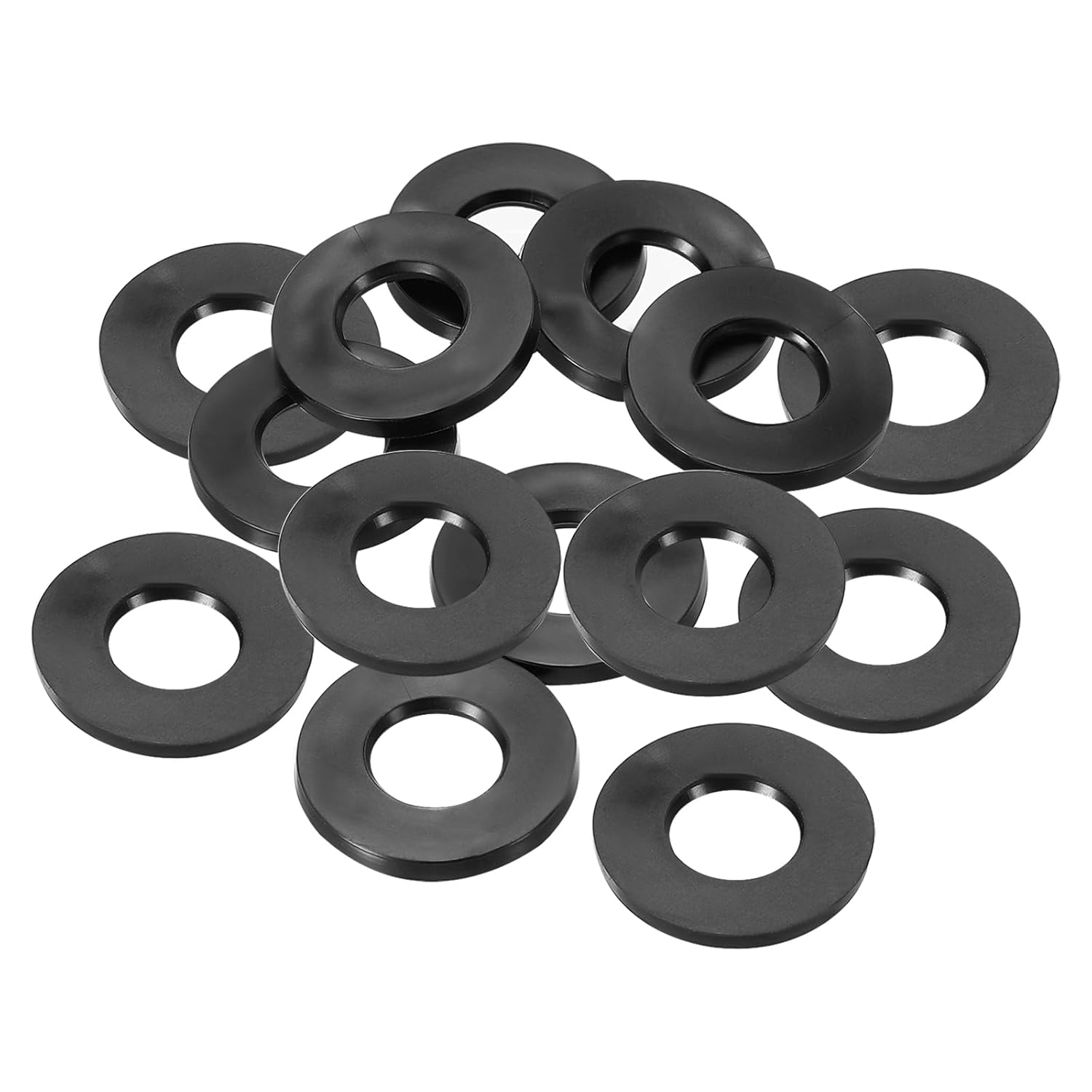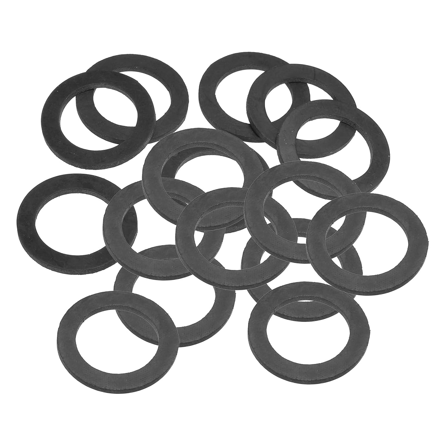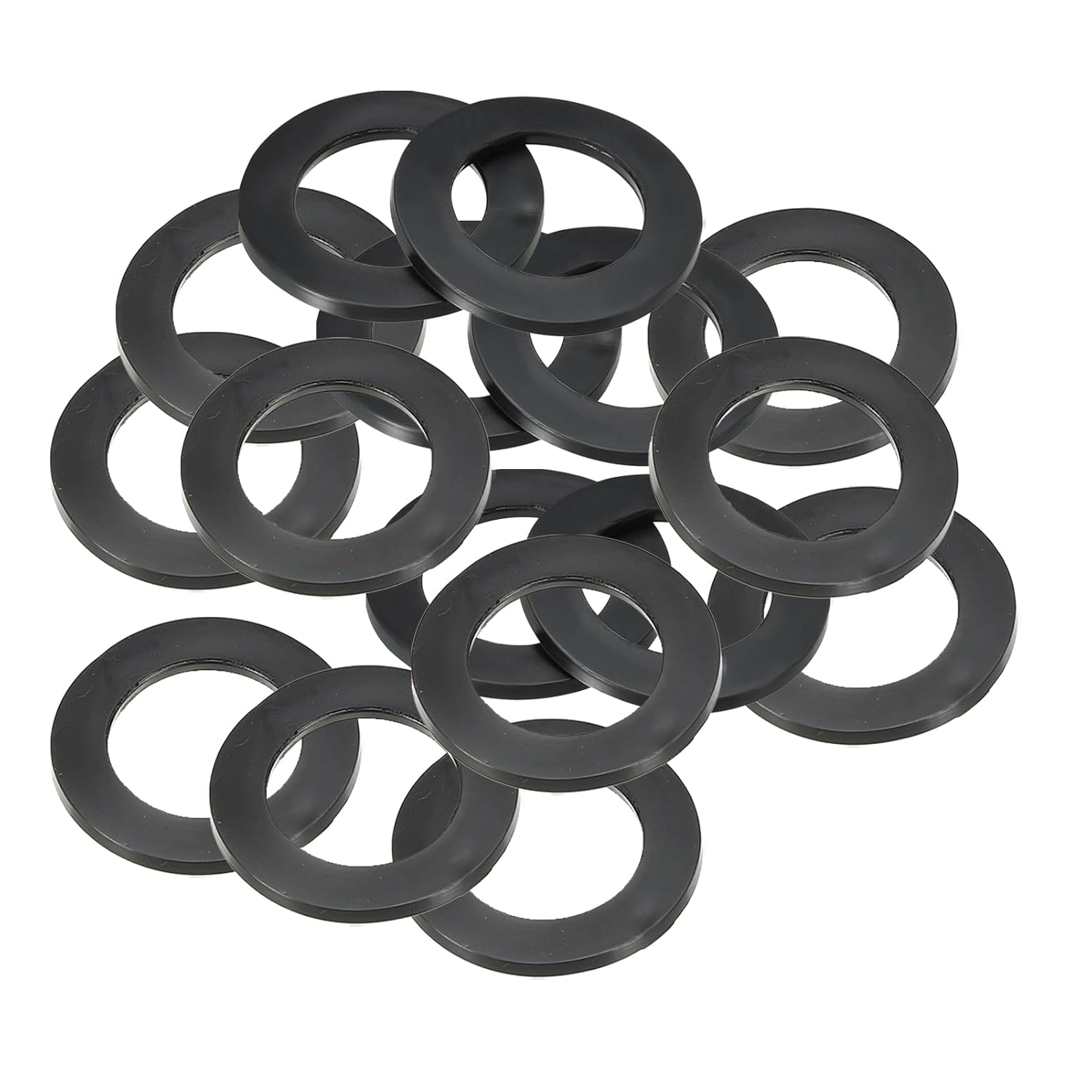 Rubber flat washers are widely used in home installations, and household appliances which with bolted connections. It can also be used as a sealing ring for faucet pipes, hose nuts or garden watering tool accessories.SpecificationColor: BlackMaterial: RubberInner Diameter: 8 mm / 0.31 inchOuter Diameter: 18 mm / 0.71 inchThickness: 3 mm / 0.12 inchPacking List: 40 x Rubber Flat WashersAdvantageMade of flexible rubber features high temperature, wear-resistant and corrosion-resistant, strong sealing, and insulation. Rubber allows for more effective sealing of harder materials or irregular surfaces.Rubber washers can be used for sealing applications, i.e. in water, oil, air, etc. They can also be used for cushioning, reducing pressure and friction, increasing the contact area and providing a support surface for fasteners.When screwing a nut onto a nylon or glass item, it is recommended to use a rubber spacer as a cushion in order to prevent its surface from tearing.InstructionPlace the washer between the item to be fixed and the bolt, and tighten the bolt.NOTE:Please choose an appropriate diameter so as not to affect its sealing performance.