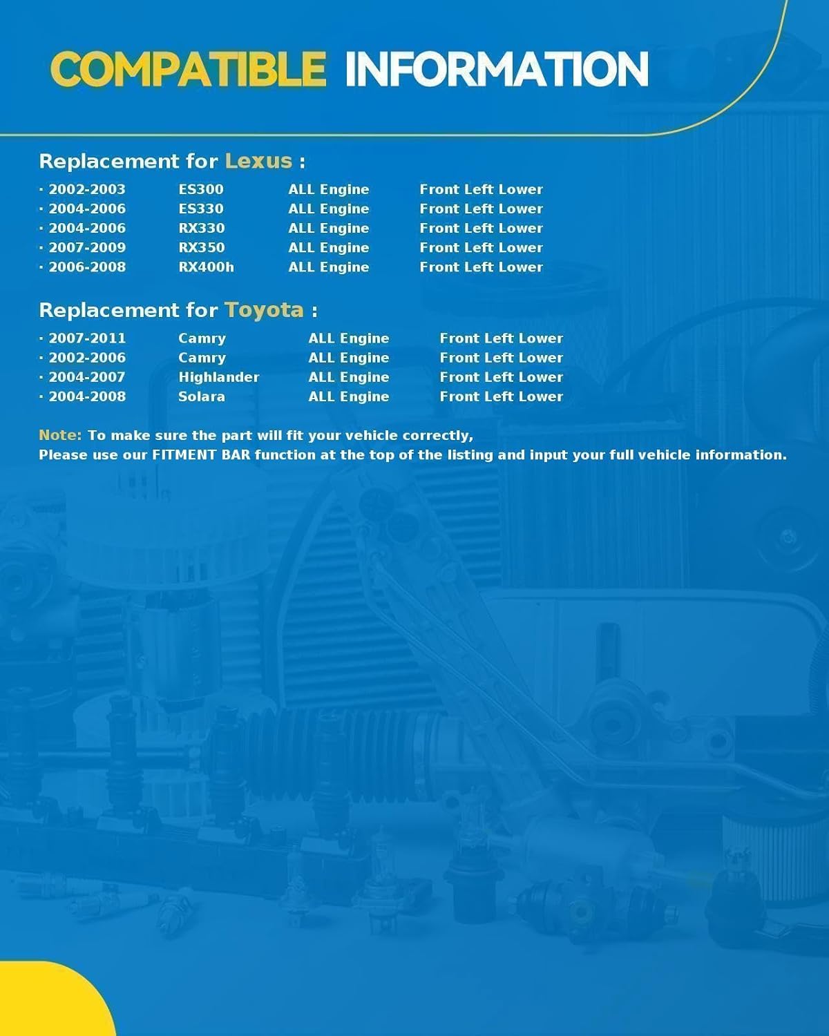 | Auto Part Position | Front Lower, Front Upper |