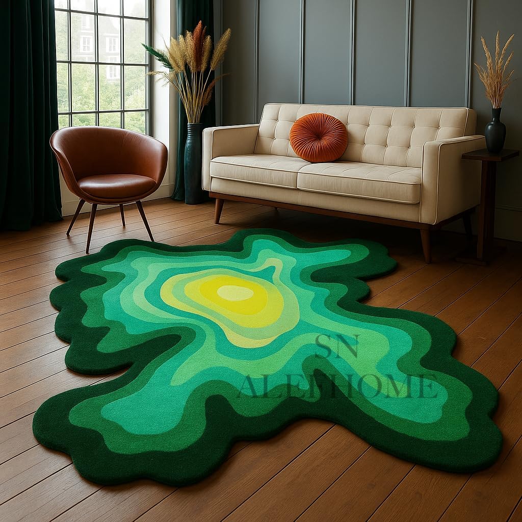Premium Hand-Tufted Wool Rug – Irregular Organic Shape with Optical Illusion Design | Modern Accent Carpet for Living Room & Bedroom(Green3' x 3')