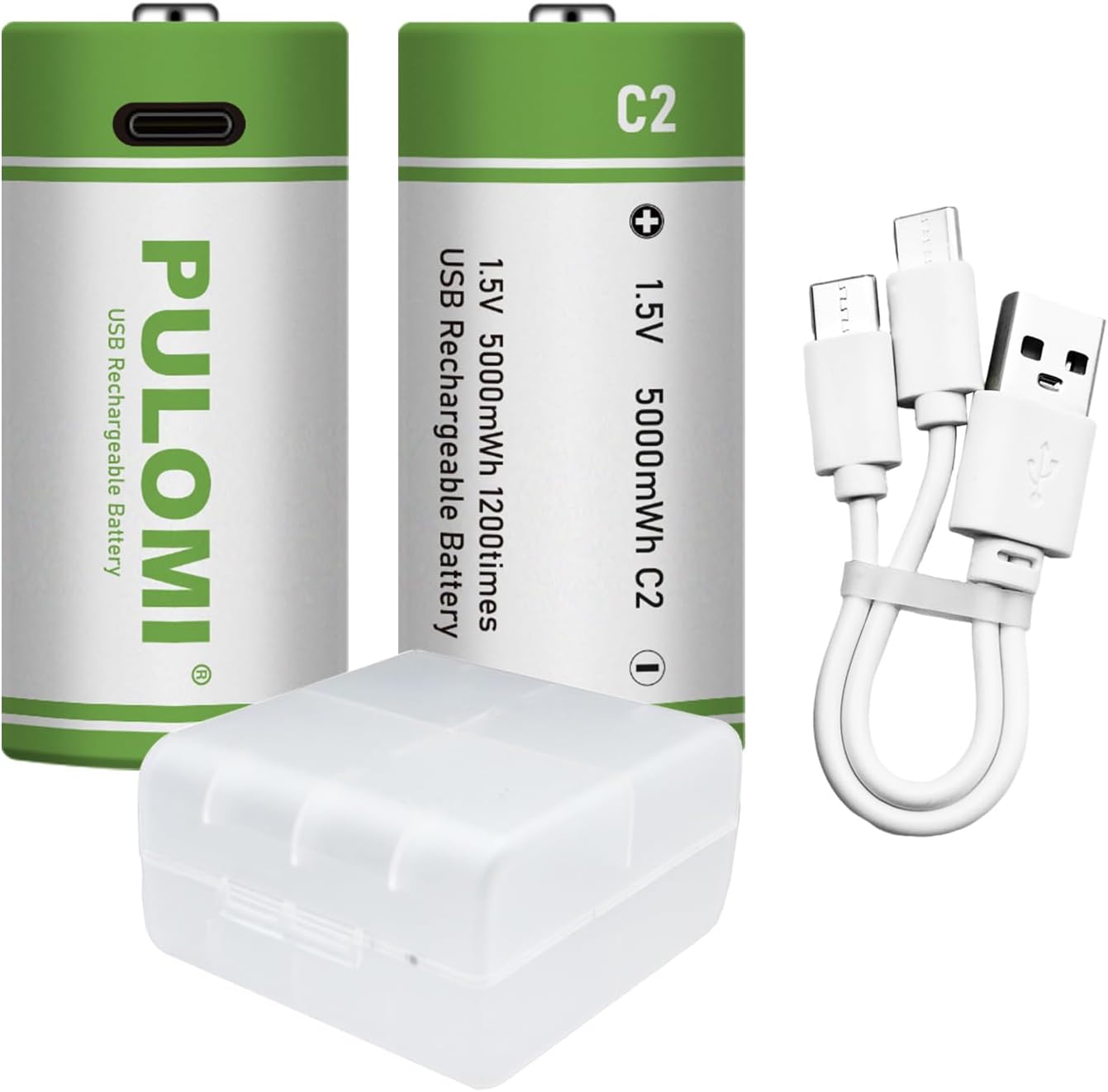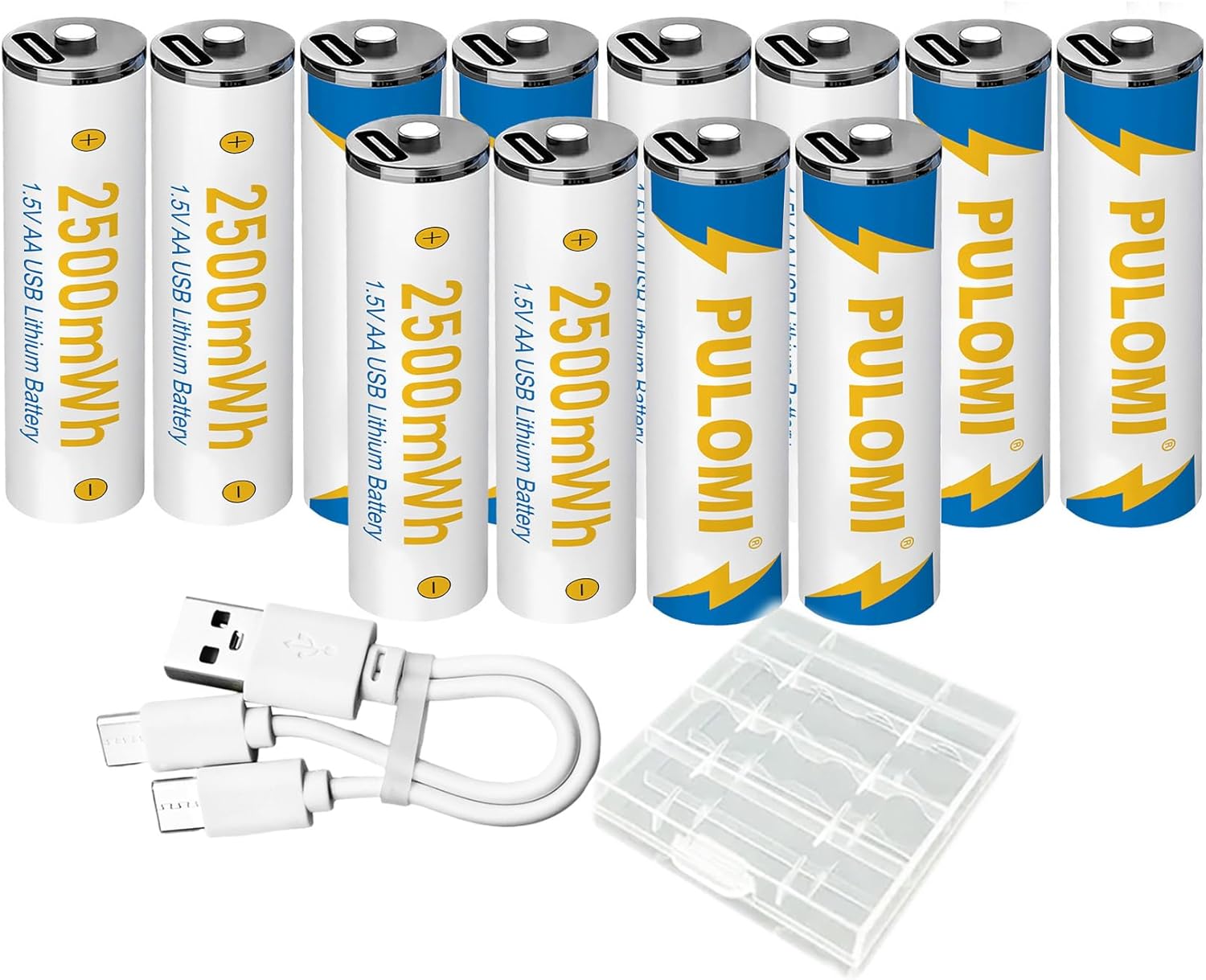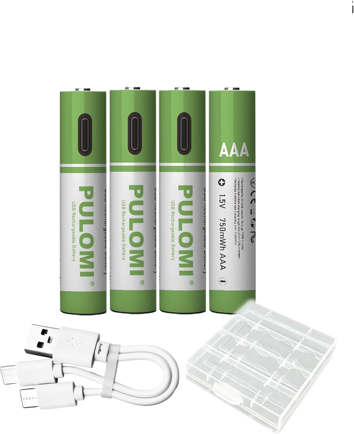 PULOMI 16pcs AA Battery USB/Type-C AA Rechargeable Batteries, High Capacity 1.5V 1666mAh 2500mWh 1.5 Hours Fast Charge, Cycle Times up to 1200x with Type-C Port Charging Cable