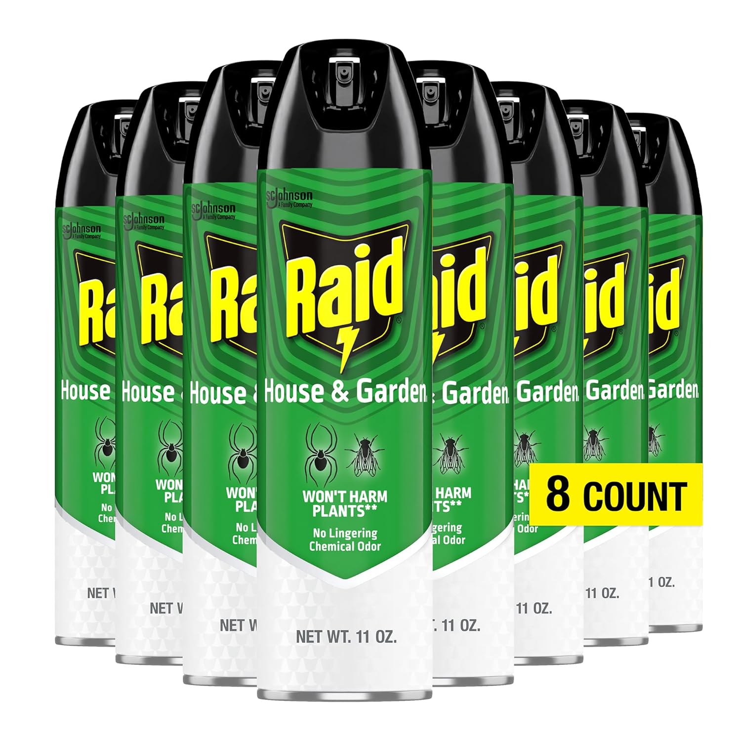 • Raid House & Garden Bug Spray kills bugs on contact and won’t damage house or garden plants