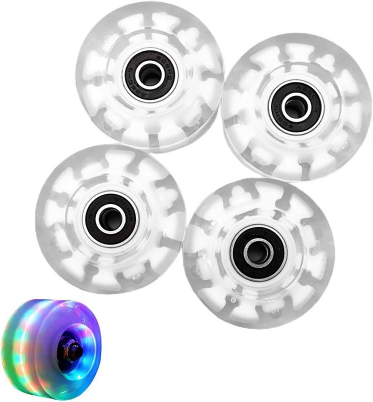 Enhanced Grip and Traction: The Roller Skate Wheels are designed with enhanced grip and traction, providing excellent control and maneuverability on various surfaces. Their superior traction ensures stability and confidence while skating, reducing the risk of slips and falls and enhancing your overall skating experience.Item Name: Skating WheelsMaterial: Faux LeatherQuantity: 4PcsFeatures: Easy to Install, Durable, LED Light FlashingSize: 5.8cm x 5.8cm x 3.2cm/2.28" x 2.28" x 1.26" (Approx.)Notes:Due to the light and screen setting difference, the item's color may be slightly different from the pictures.Please allow slight dimension difference due to different manual measurement.Package Includes:4 x Skating Wheels