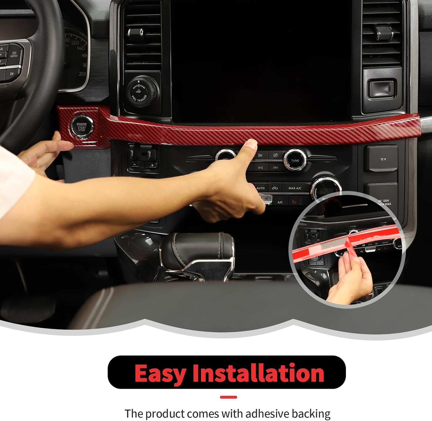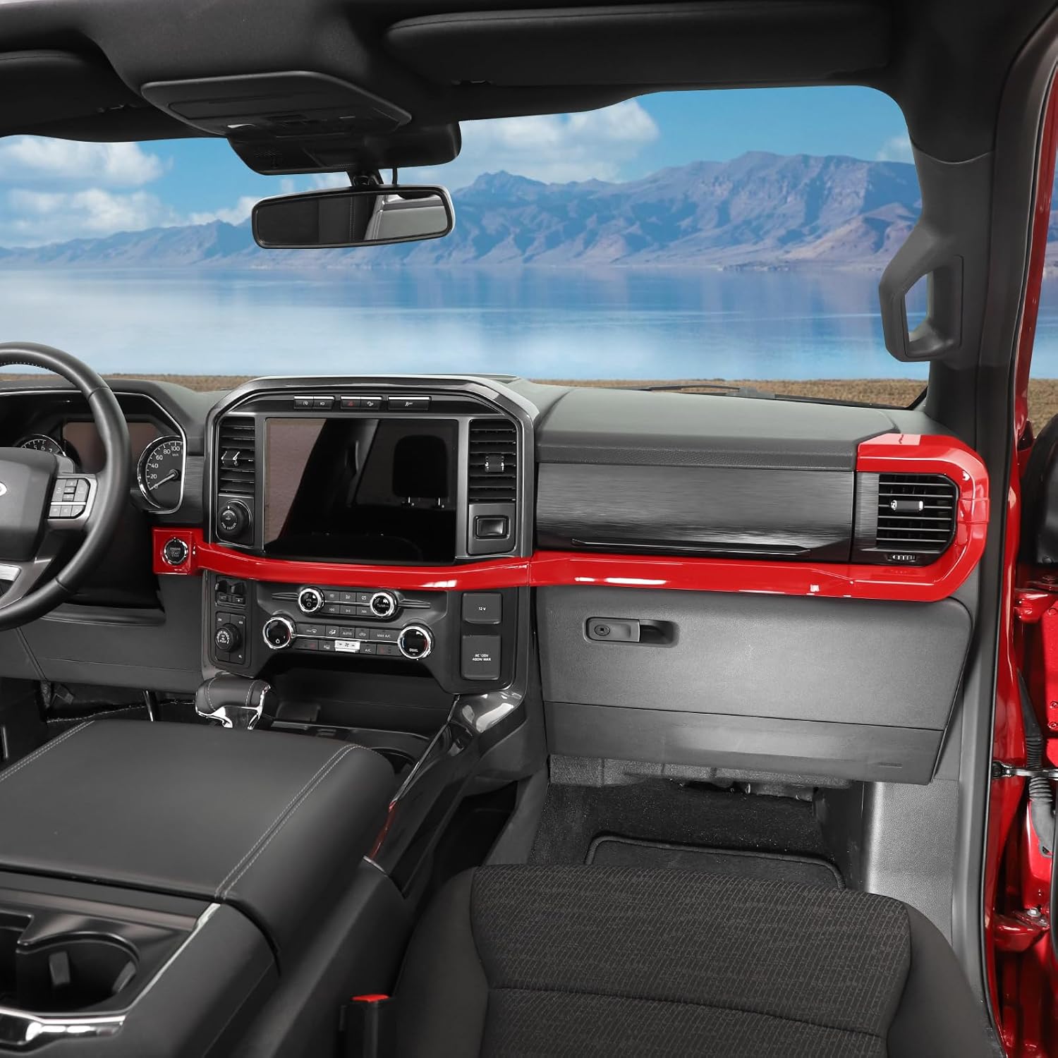 RT-TCZ Center Console Dashboard Strip Cover Trim Decoration Interior Accessories for Ford F150 2021-2025