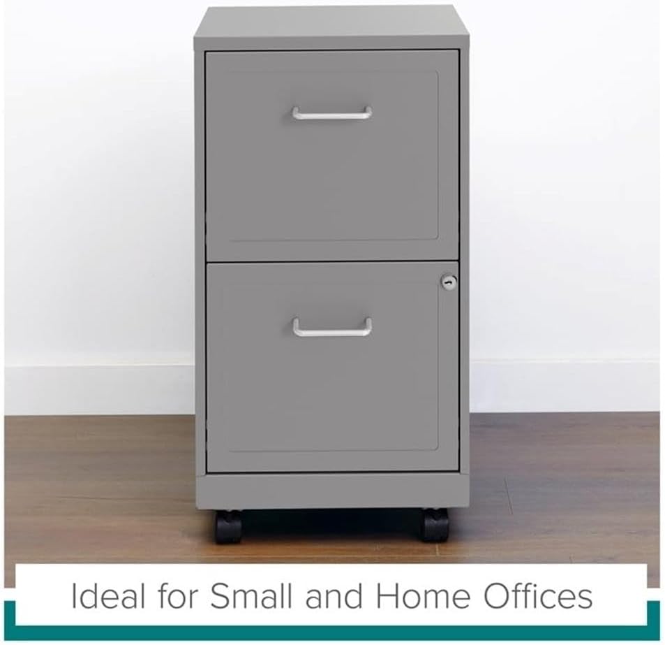 The Mobile 2-Drawer Metal File Cabinet in the color artic silver is designed for small office or home office use. The cabinet features a smart, efficient design that works well in small spaces and fits under most work surfaces or desks. Each drawer features high-sides to accommodate letter-sized hanging files. The drawers are also a perfect storage solution for other office essentials. Using a patented glide suspension, the drawers have a smooth open and close slide with a three-quarter drawer extension to prevent tipping. In addition, you can keep your files and possessions secure by using the built-in lock for both drawers. The additional wheels that come with this file cabinet are both stylish and functional which makes it easy to move around your home or office. Painted steel surface is non-porous and easy to clean. Bring organization and function to your home or office with this stylish mobile two-drawer file cabinet. Your supplies and files will always be organized and within reach!Features:- [Durable Metal Material]: Made from high-quality metal for strength and durability.- [Modern Arctic Silver Finish]: Attractive and sleek arctic silver finish.- [Ample File Storage]: Drawers accommodate letter-size hanging file folders.- [Easy Mobility]: Easy roll casters for effortless movement.- [Stylish Design]: Stylish embossed drawer fronts add a touch of elegance.- [Secure Locking System]: Cam lock secures both drawers for added security.- [Easy to Clean]: Painted steel surface is non-porous and easy to clean.- [Sophisticated Look]: Square embossed drawer fronts add style and sophistication to the office.Specifications:- Product Dimensions: 26.70" H X 14.25" W X 18.00" D- Product Weight: 20- Assembly Required: No- Assembly Details: Ships fully assembled. To ensure the key for this product does not get loose, slide the thumb latch on left side of handle to the right, at the same time, pull the drawer open. Keys are hanging inside the cabinet by the locking mechanism.