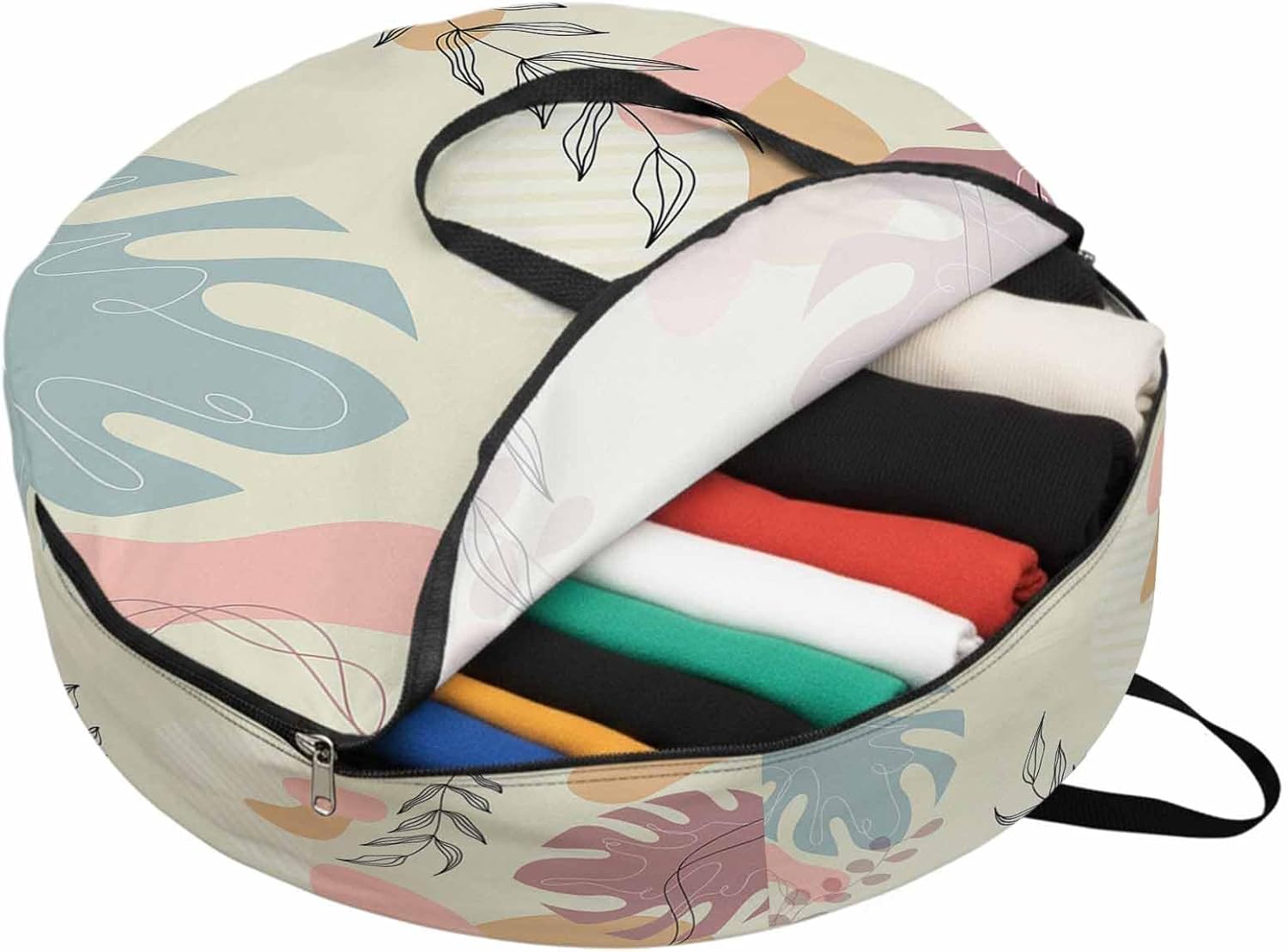 Reclaim Your Closet Space with the Round Storage Solution! Material: polyester Diameters: 24 inch, 30 inch, 36 inch Depth: 7 inches Package Includes: Round Storage Bag One Bag, Endless Possibilities: Whether you are swapping out your summer wardrobe, moving into a new dorm, or packing away holiday decorations, this bag has you covered. The circular design is uniquely suited for: Bedding: Comforters, quilts, sheet sets, and oversized pillows. Clothing: Winter coats, sweaters, and bulky ski gear. Home Decor: Holiday wreaths, garlands, and floral arrangements. Outdoor Gear: Camping blankets, sleeping bags, and beach towels. Dual Zippers: The high quality double zipper design allows the closet organizer to open wide from both sides, making it effortless to load and unload even the bulkiest comforters or wreaths. Reinforced Handles: Sturdy, reinforced handles are securely stitched to provide extra strength and a comfortable grip when carrying heavy loads or pulling the bag from under a bed. Clear Label Pocket: A transparent built-in label holder allows you to quickly identify the contents of each bag without ever having to unzip it, keeping your storage perfectly organized.