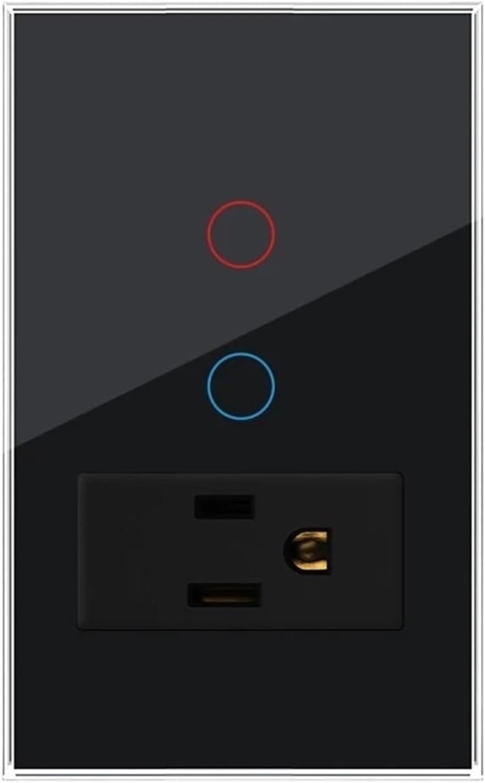 Standard Outlets==========Hign-concerned Chemical : NoneMaterial : GlassSocket Type : Socket 220VInstallation Type : Wall EmbeddedGrounding : Standard GroundingApplication : Residential / General-PurposeOrigin : Mainland ChinaCertification : CEType : smart switchFeature : US socketLoad Power : 300W/gangMechanical Life : 100,000 Times of OperationPanel Material : Tempered Glass PanelSize : 118*72mmUse platform : Smart life / AppWork with : Google Home/ AlexaSupports : 2.4GHzPackage : Individually packaged
