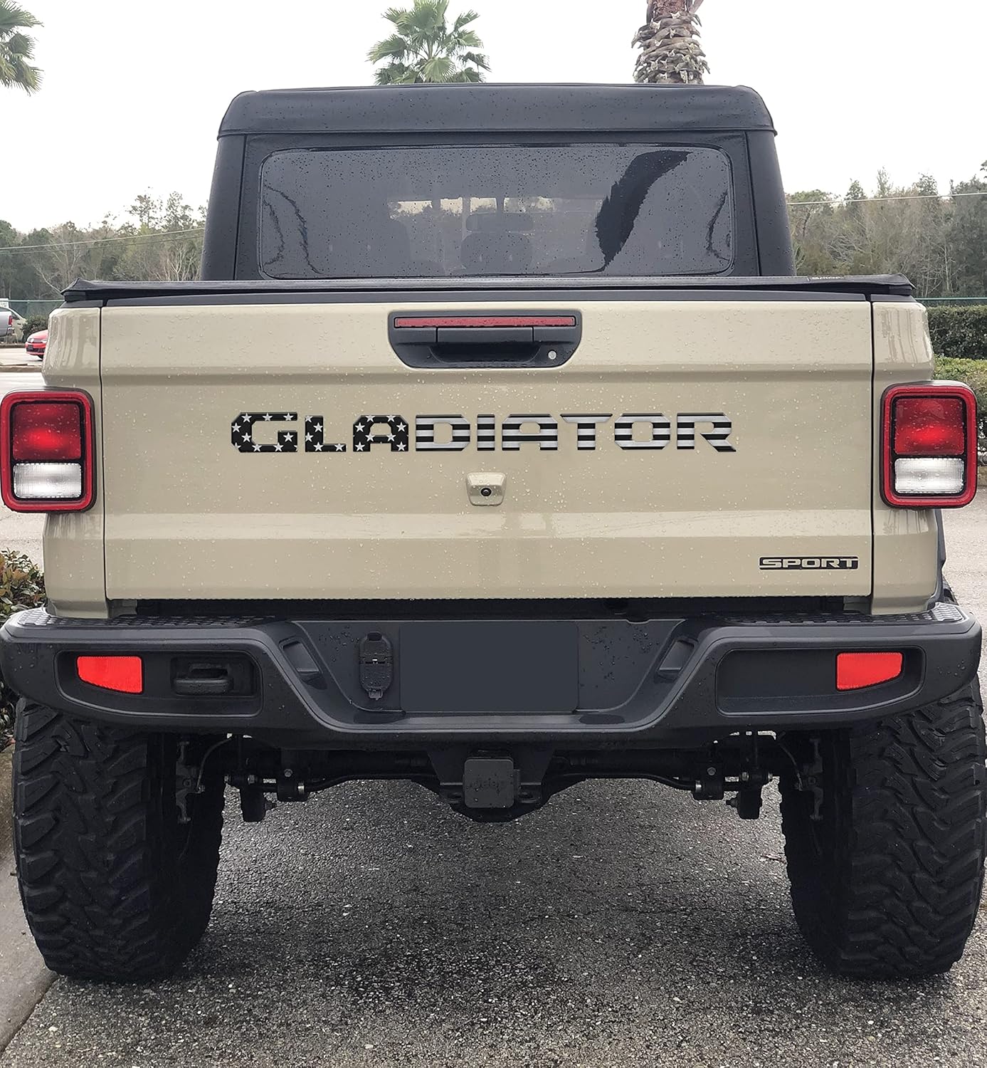 DescriptionAdd a new look to your Gladiator by installing TUFSKINZ Tailgate Letter Replacement. This kit adds style and protection to your vehicle and is fittingly positioned where the OE emblem is. The tailgate OE emblem is to be fully removed before installing our letter replacements.Material TypeDomed (Raised 4mm) - Our Domed product line is our signature product. Each piece is manufactured with our 3-layer process that has been designed and tested to withstand all elements.FIRST LAYER - Superior UV Doming Resin that creates a high gloss, scratch resistant, durable finish.SECOND LAYER - Consists of a variety of substrates including our 100% Real Carbon Fiber, Chrome, Camouflage and Factory color matches to allow an array of custom options.THIRD LAYER - Utilizes our 3M Automotive Grade Adhesive that creates the perfect bond to the surface of the vehicle and makes the product installation an ease.**Only Exception: Real Carbon Fiber (Raw) is Raised 1mm**Easy InstallationTUFSKINZ Tailgate Letter Replacement pieces are designed to replace where the tailgate OE emblem is on the tailgate of the vehicle. Prep and installation include the removal of the OE emblem on the tailgate, cleaning the surface thoroughly, aligning jig/dry fit parts, and then install. Roughly about 30-45 minutes to install.