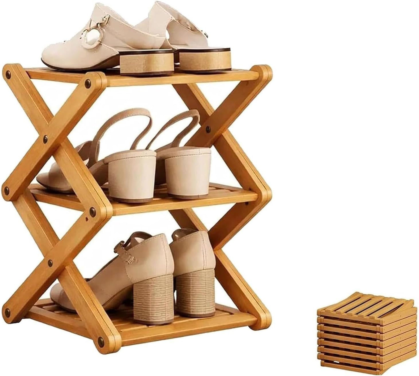 Specifications:Name: The 9-Tier No-Assembly Bamboo RackMaterial: BambooColor: Nature/BrownSize: 2/3/4/5/6/7/8/9/10 TierStyle: Tiered Shoe Shelf, Stackable DesignPackage Includes:1 pcs * Foldable Corner Shoe Shelf1 pcs *Shoe Brush 5 pcs * Dust BagNote:1.Please allow slight size errors due to manual measurement.2.Due to different monitors and different light, the picture may not show the actual color of the item.