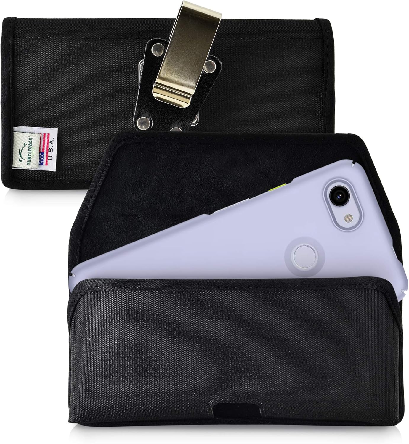 Protect your smartphone from dirt, dust, and scratches with the sleek, black, Turtleback Pixel 3a Belt Case! Made from lightweight and durable leather, this case is made to fit your Pixel 3a equipped with a slim case (a looser fit for phones without a case). Stop wasting time searching for your mobile phone in your bag with this ergonomic belt clip case. Its magnetic closure system keeps your phone in place at your hip, where it's easily accessible. Its magnetic closures use rare-earth neodymium magnets for optimum security. No matter what activity you're doing, this Turtleback Case stays in place, and so does your smartphone. It also features bonded leather exterior with soft felt interior. The premium leather exterior protects your electronic device from scrapes and scratches. While the soft felt keeps dust and dirt away from the phone screen. For easy removal, the case has a bottom hole for gripping your mobile device. In addition, it features flush metal belt clip wrapped in bonded leather for added comfort. Our case is designed and Assembled in USA. Why settle for less? Invest on a trustworthy and secured casing. Enjoy maximum protection with Turtleback Pixel 3a Belt Case today! Your satisfaction is guaranteed