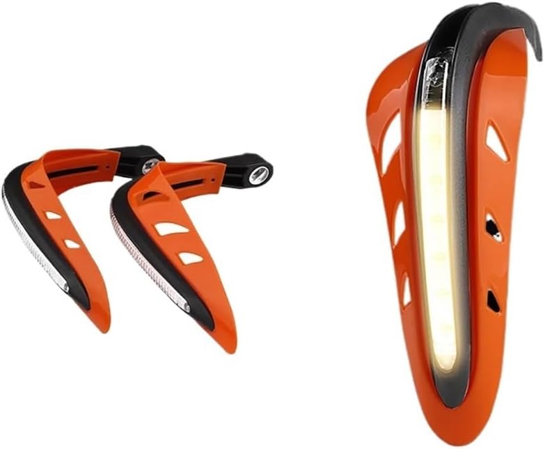 Motorcycle Coverre HandguardThis hand guard has LED lights so it can improve visibility in dark environments reduce traffic accidents ensure driver and make your motorcycle look cool.More importantly it protects the hand and the handlebar from accidental injuries such as bumping into the rearview mirror.With its cool look and unique design it has been popular with many people.LED light strips are integrated into the hand guard shield.LED lighting can improve visibility in the dark ensure the security and decorate your motorcycle more cool when driving.Low consumption bright enough even under the daylight.Protect hands and handlebar from unwanted damage like bumping into side mirrors road hazards.simply connects to your vehicle's side/parking/head light wiring. type:Falling ProtectionPackage Include 1 Pair Left & Right Item Weight : 0.5kgItem Width : 20cmItem Length : 23cmItem Type : Falling Protection : Aluminum+PC plasticWe don't just sell products—we provide comprehensive support including pre-sales consultation and logistics tracking to make your shopping experience more enjoyable.