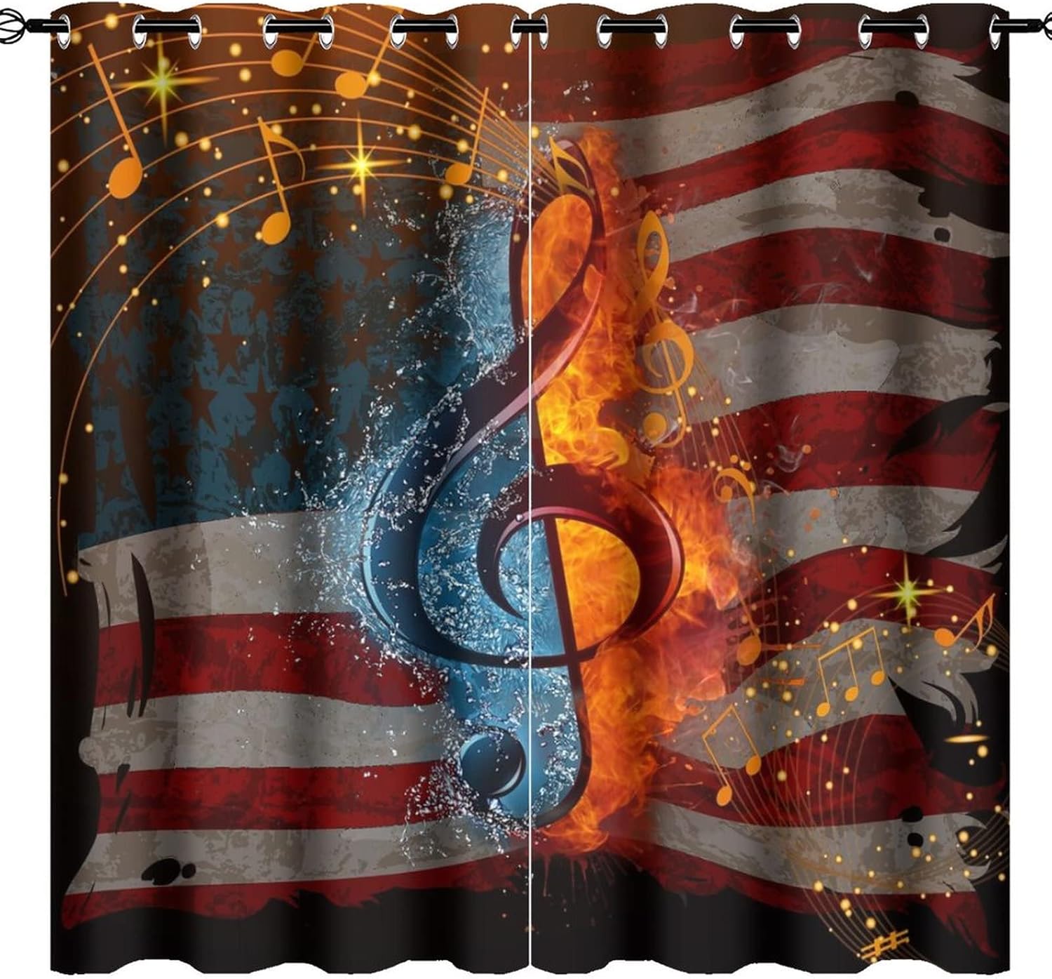 This Vintage Musical Notes Theme Curtains can block out 85%-99% sunlight and UV ray ( Darker colors work better), perfect for late sleepers and afternoon naps. Our energy saving curtains insulate against summer heat and winter chill to balance your room temperature, reduce outside noise .Kazynee Custom Design Shop:Our curtains Immerse your home in splashes of color.The 3d print curtains give off a realistic tint in the whole room and turns the room into a magical colorful fairy-scape.Premium Material:Adopt high-quality 100% polyester fabric.Three-layer woven fabric, high-precision black silk shading partition,density of the middle black silk layer is double that of ordinary fabrics, greatly improve the shading effect.HD Printing Technology:High resolution pictures bring a perfect visual experience to your life.Industry-leading HD printing technology, No strange odor. Toxic free and safe.Easy Cleaning:This blackout curtains machine washable, gently cycle, no bleach, tumble dry low, and iron at low temperature settings.Kindly Remind:- Don't use sharp things scratching curtains.- For proper fullness panels should measure 1.5-2 times the width of your window.- 24 Hours customer support.- As different computers display colors differently, the color of the actual item may vary slightly from the above images.