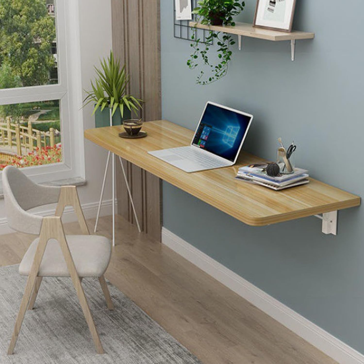 • Space Saving: Fold up to work on your laptop, stack household items, fold clothes, place food, drinks or tools without ever taking up additional space in your house. And when you're done, simply fold down this drop leaf wall mount table which is perfect for small space. Floating design of foldable dining table can free up much floor space and make your room clean and neat.