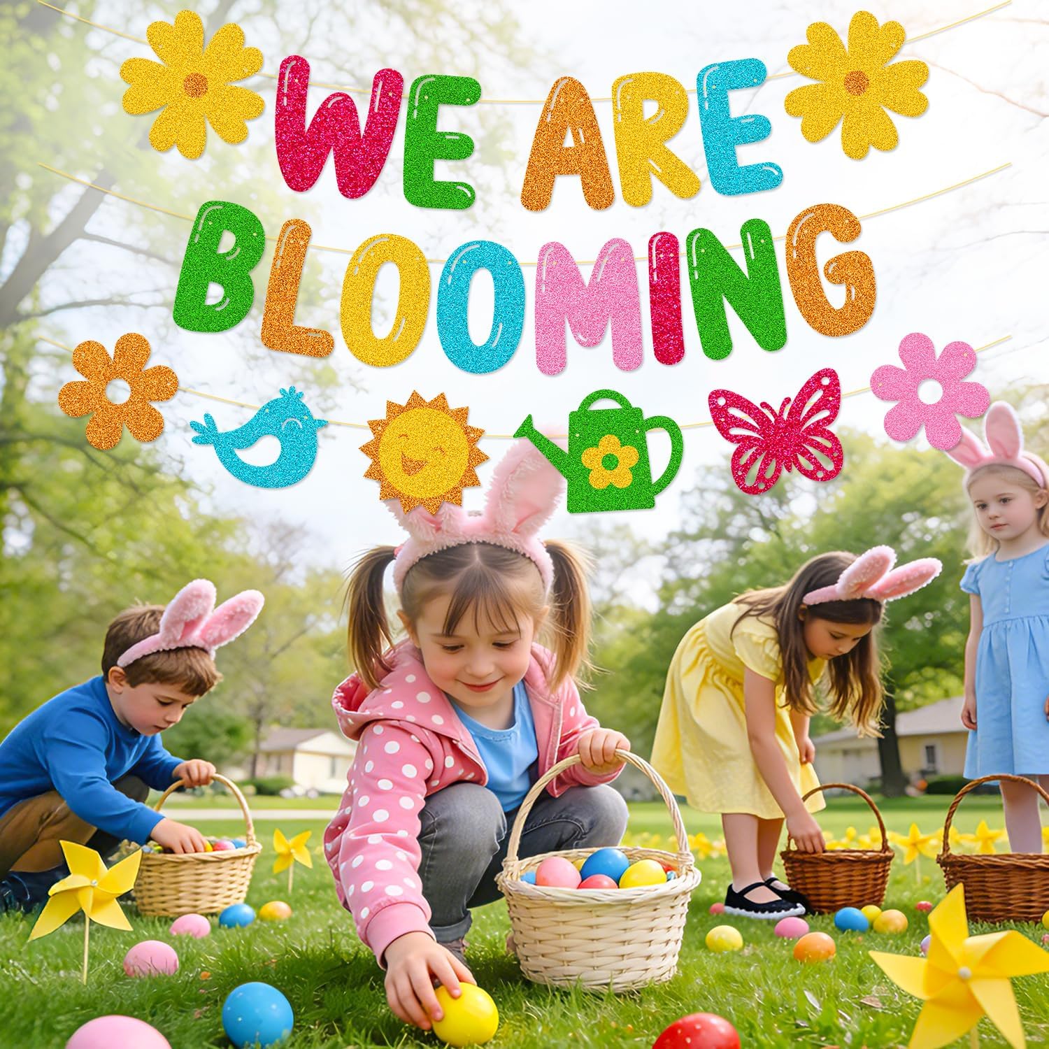 We are Blooming Banner School Classroom Spring Party Decorations for Student Children Celebrating Spring Party Supplies