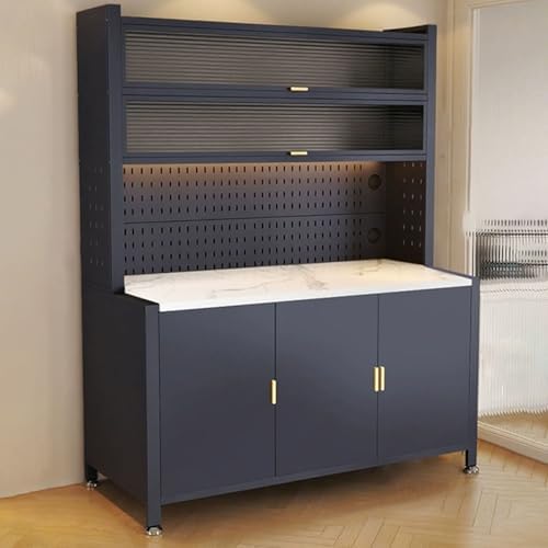 Introducing the JKGHK Kitchen Baker's Rack, a versatile and stylish addition to your home that combines functionality with a sleek design. Constructed with reinforced, thickened metal, this kitchen storage solution offers exceptional strength and stability, ensuring it can withstand daily use. Equipped with a built-in power outlet at the back, this buffet table allows for easy access to power without the clutter of visible cords, keeping your kitchen countertop organized and tidy. The 10cm elevated legs provide effortless cleaning underneath, making maintenance a breeze. This multi-functional sideboard buffet is perfect for various settings, whether you're hosting a dinner party, setting up a coffee bar in your living room, or needing extra storage in your entryway. The side pegboard hooks optimize vertical space, allowing you to hang utensils, pots, or decorative items, ensuring everything you need is close at hand. Available in multiple sizes (60/80/100/120x157/182.5x42cm), you can choose the perfect fit for your space. The contemporary gray and white color options seamlessly blend with any decor, making it a stylish addition to your kitchen cupboard or dining room sideboard. Please note, as this product is handmade, slight variations (1-2 cm) may occur. Additionally, due to lighting and screen settings, actual colors may vary from images. Elevate your home’s storage and style with the JKGHK Kitchen Baker's Rack – a practical solution for a clutter-free, organized living space.