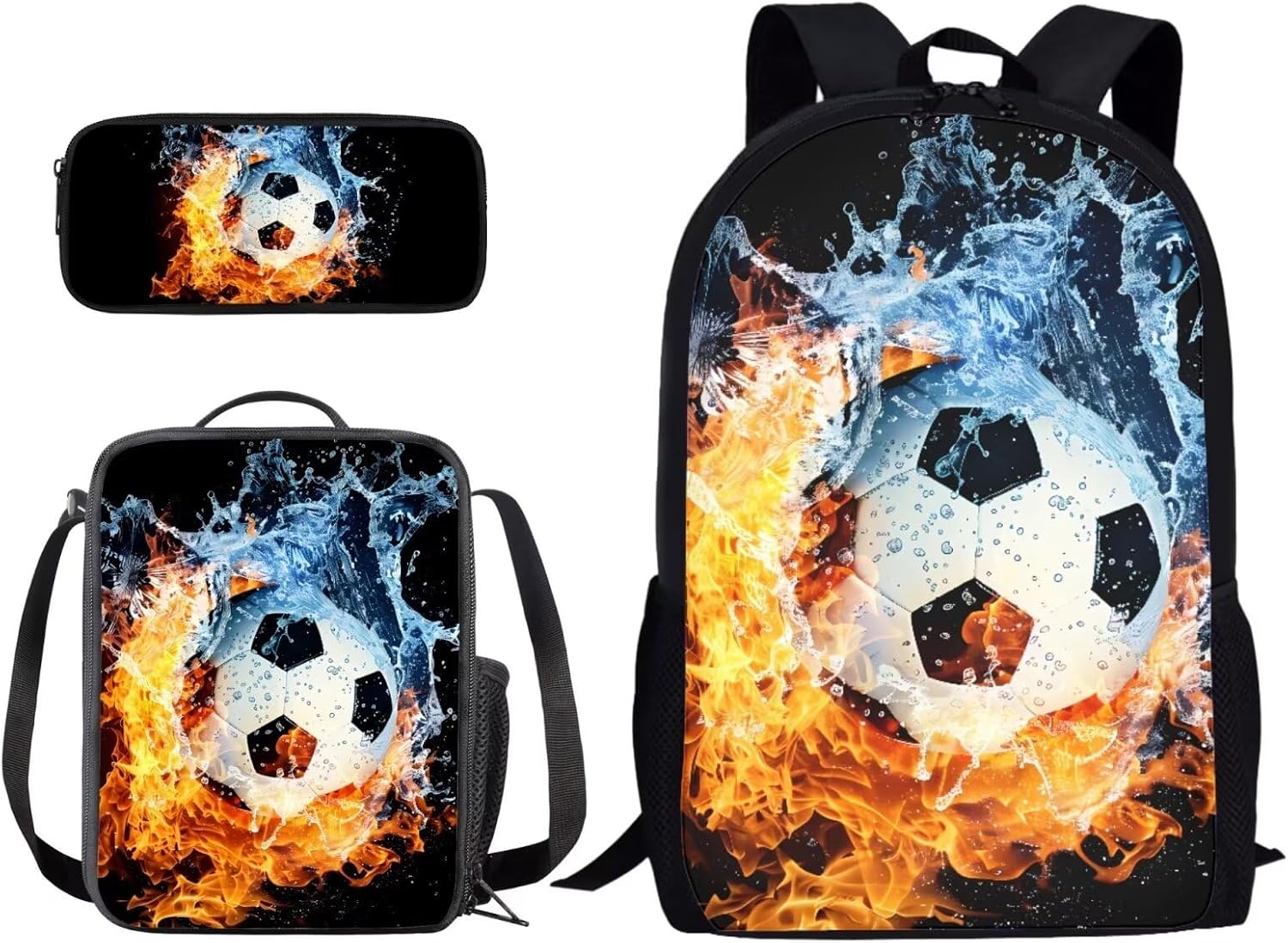 Xoenoiee Backpack 3 Pieces Set Includes Schoolbags Lunch Tote Bag and Pencil Case Back to School AccessoriesComplete 3-Piece Set:Our Backpack set is made from high-quality polyester material, Lightweight and Durable. The set includes a backpack, lunch bag, and pencil bag, making it a convenient and practical option for students.Stylish 3D Print Design:Our backpack and lunch bag feature a fun and unique 3D print design, making them a stylish choice for children.Perfect Size for Students:The backpack measures 17.3" x 11" x 5.1", The lunch bag measures 9.45" x 7.48" x 3.14",The pencil bag measures 8.66" x 1.77" x 4.33".Important Notes:Please note that all sizes are manually measured, with a margin of error of 1 inch. Additionally, due to differences in camera, lighting, and display, the physical color of the bags may differ slightly from the pictures.